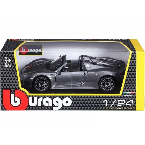 Bburago Коллекционная машинка 1:24 Porsche 918 Spyder 18-21076 серый металлик (18-21076GY)