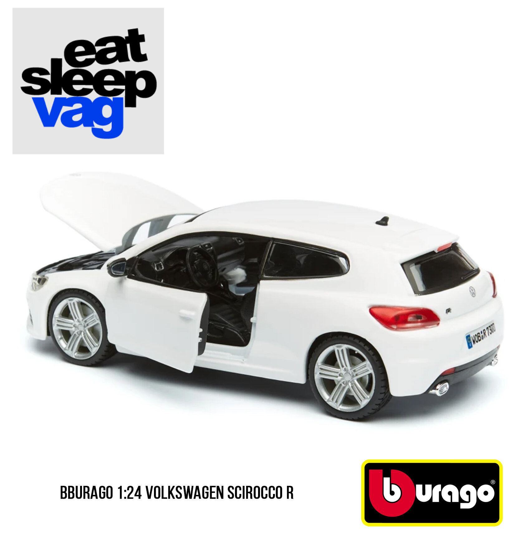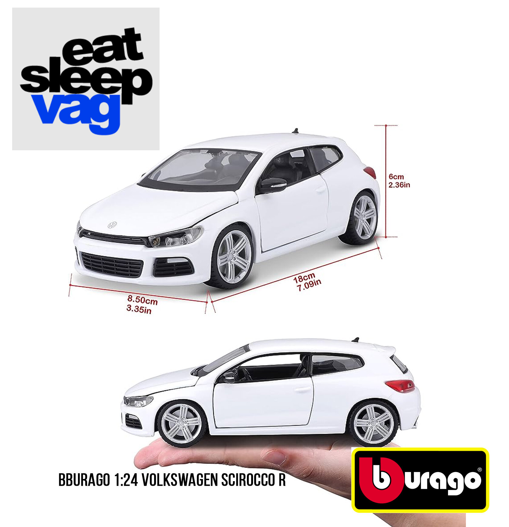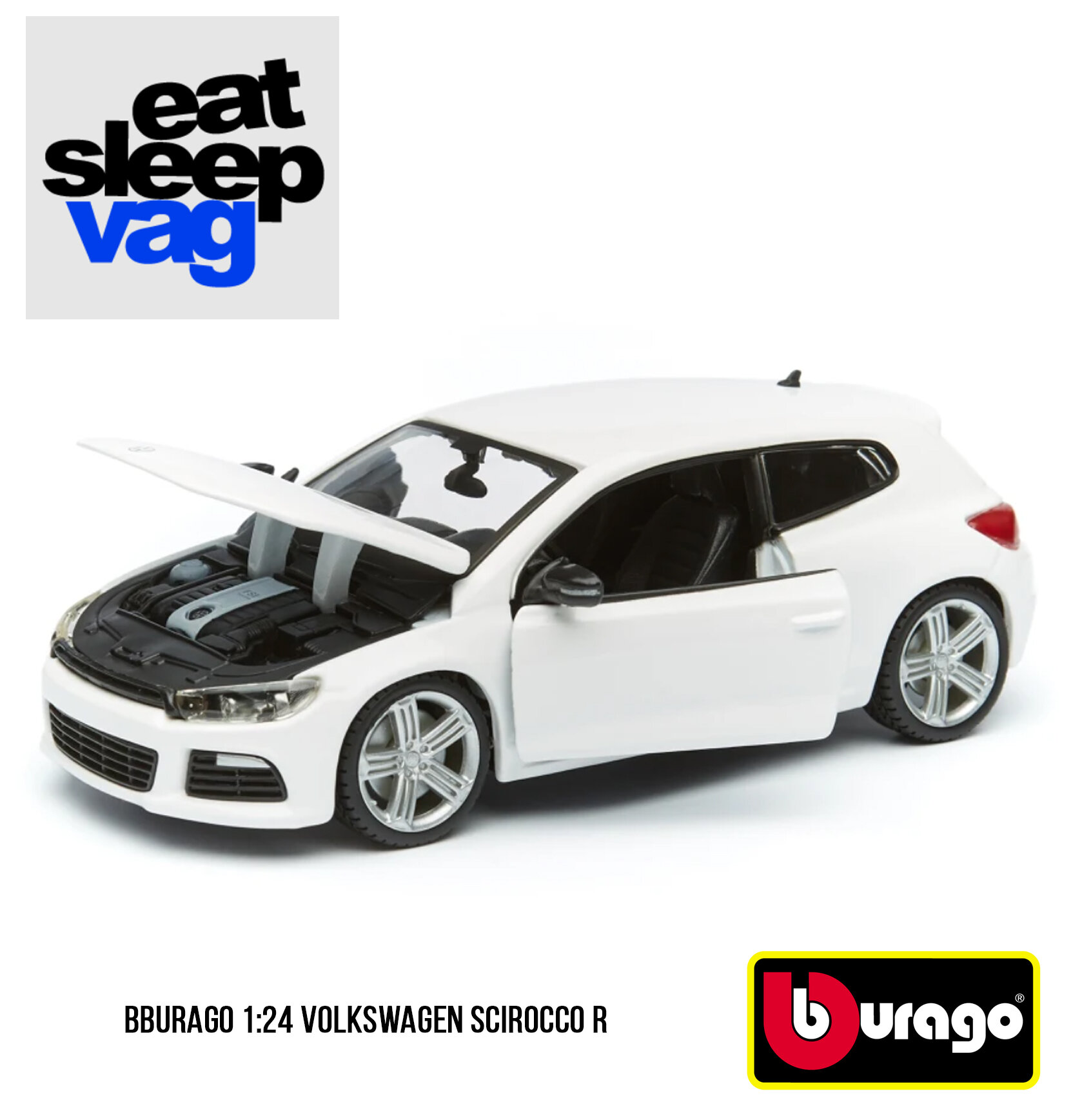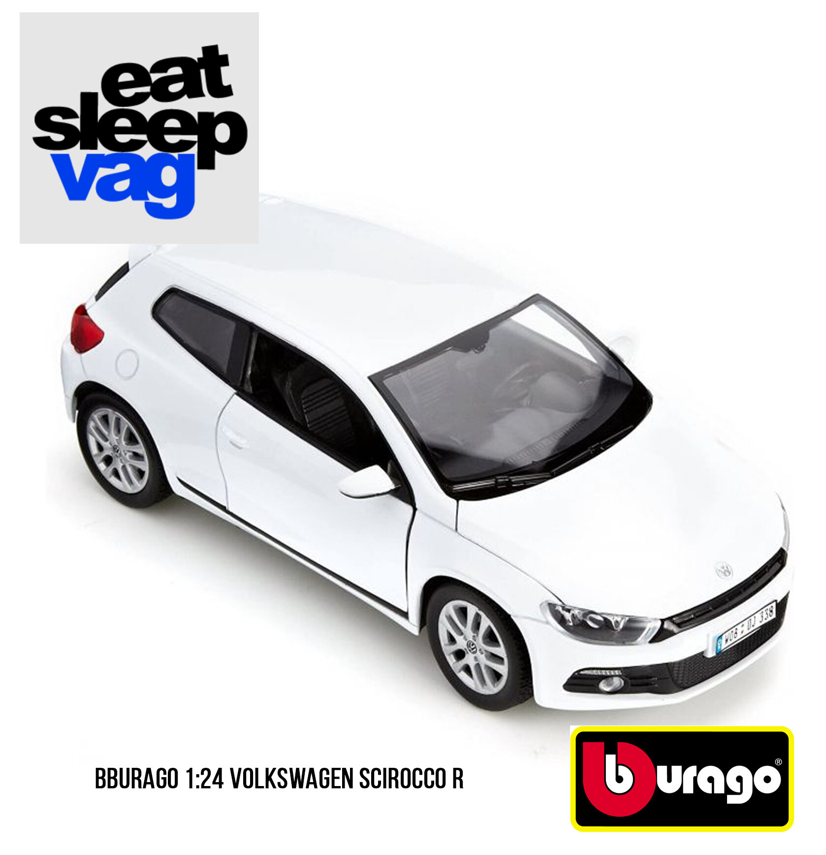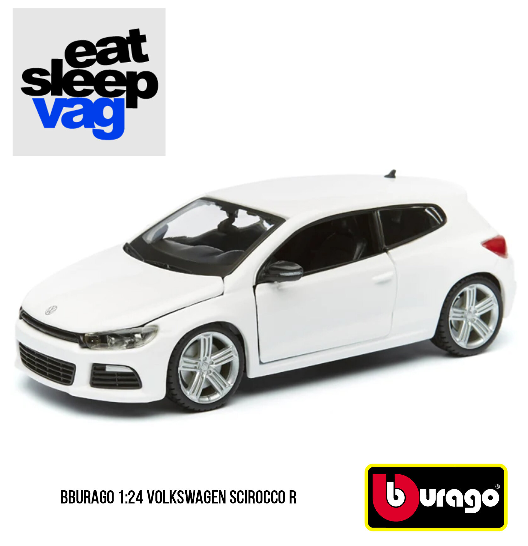 Машинка металлическая 1:24 Volkswagen Scirocco R белый 18-21060 - продукт итальянского бренда Bburago (Бураго), безусловного и признанного лидера среди производителей коллекционных моделей игрушек.