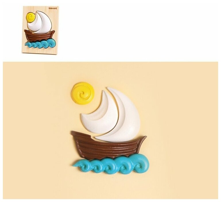 Пазлы — одно из любимых детских развлечений. Но, например, для детишек трехлетнего возраста такая игрушка будет слишком сложной, так как она содержит сотни мелких мозаичных компонентов, складывающихся в единую картинку. Но бренд "ТОМИК" исправил ситуацию: специалисты компании создали пазлы для малышей. Для них предусмотрена деревянная основа выемками для кусочков картинки (по принципу рамки-вкладыша). В состав таких "малышковых" пазлов входит небольшое количество элементов: 4–5 штук. Представляем вашему вниманию деревянный пазл "Кораблик".