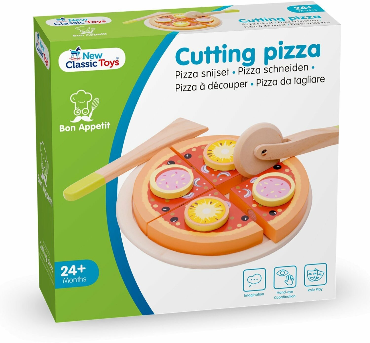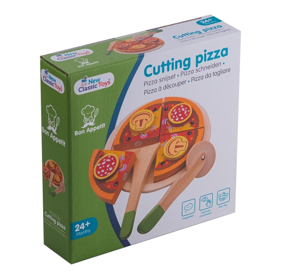 Все предметы в этом наборе выполнены из дерева и абсолютно безопасны. Кусочки пиццы соединены липучкой.