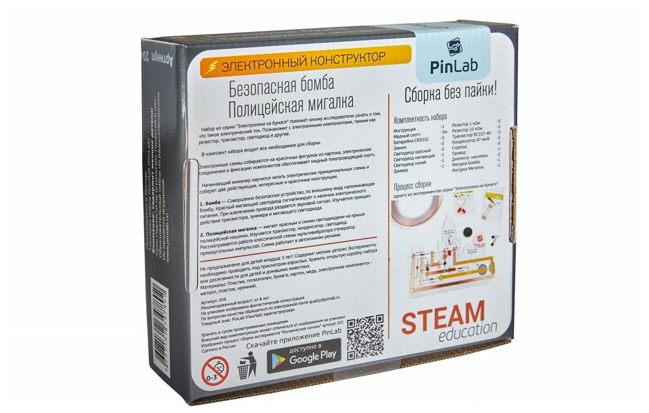 PINLAB Электронный конструктор "Безопасная бомба Полицейская мигалка" (204)