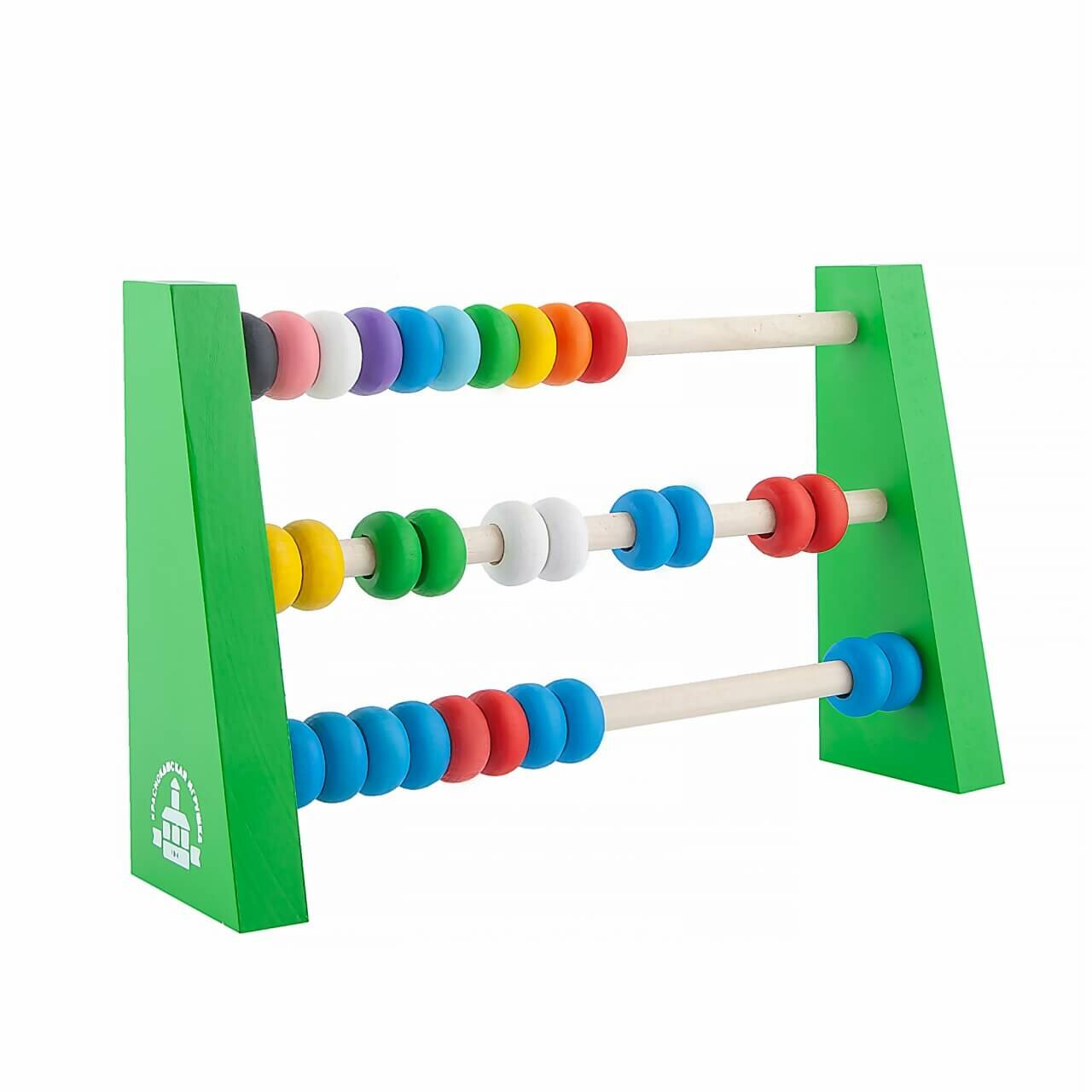 Яркие счетики представляют собой три ряда. На каждом из них — большое количество мелких разноцветных шариков. В каждом ряду по 10 шариков. Их главная задача — играючи научить ребенка считать и различать все цвета радуги. Яркая форма счетиков без труда увлечет малыша и с легкостью даст необходимые знания. Каждая деталь состоит из высококачественной экологически чистой древесины — береза, бук, липа. Такой материал не токсичен и не вызывает у ребенка аллергию. Плюсом для заботливых родителей станет то, что деревянные игрушки устойчивы, практичны и долговечны, они не могут разбиться на мелкие осколки или раскрошиться, а потому не травматичны. К тому же малышу будут интересны новые ощущения, ведь фактура дерева интересна — прожилки, впадинки и выпуклости.