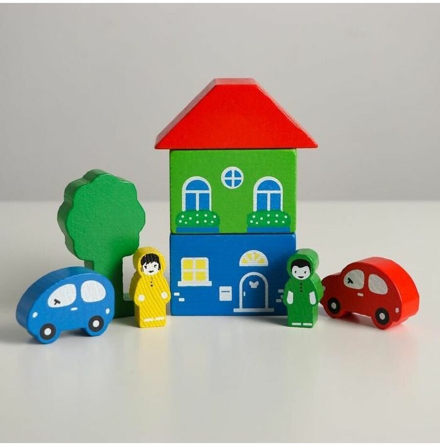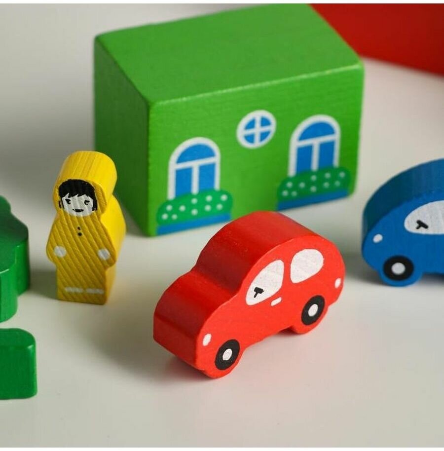 Яркий деревянный конструктор собирается достаточно быстро. Это маленький городок с большим многоэтажным домом, аллеями, машинами, маленькими обитателями. Это настоящая "сцена" для множества игровых сюжетов. Придумайте вместе с ребенком, чем занимаются жители веселого деревянного городка, кто с кем дружит, как они ходят друг к другу в гости. Пространство для фантазии — очень широкое. Направьте ребенка в творческое русло!