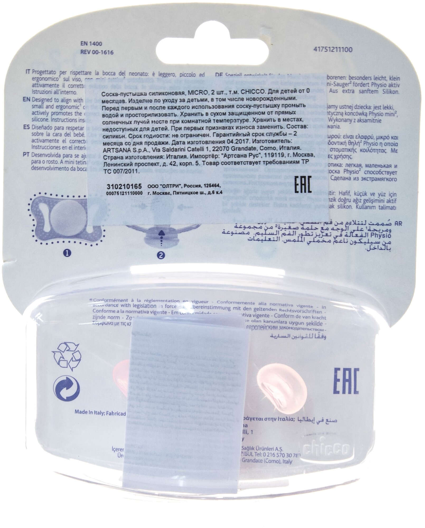 Chicco Пустышка силиконовая Micro для принцессы 0-2 месяца 2 штуки карета и нейтральный (310210174)