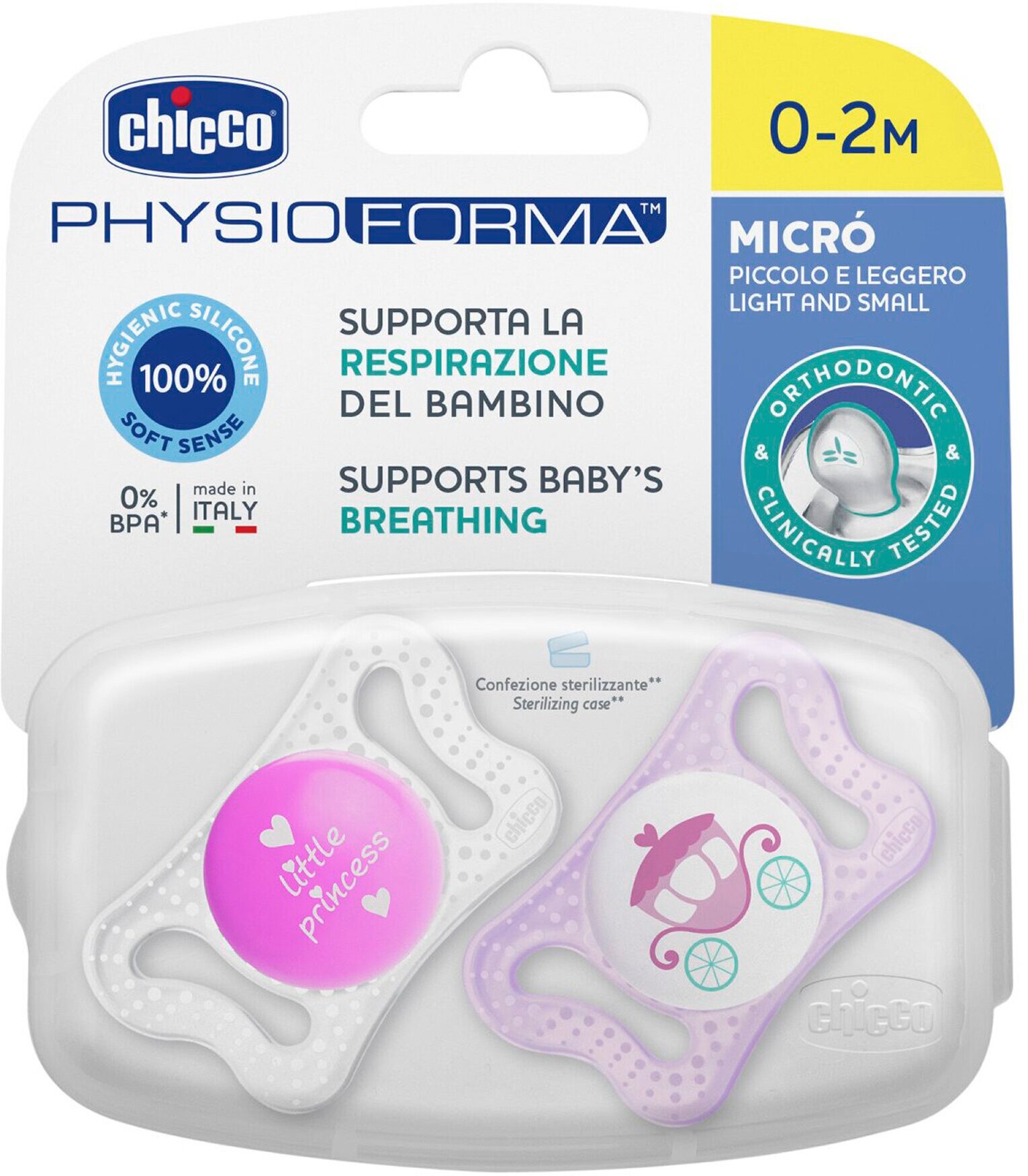 Нежные пустышки Chicco Physio "Micro" разработаны совместно с ведущими ортодонтами и учитывают физиологические особенности грудного ребенка, способствуя правильному формированию и развитию ротовой полости. Предназначены для детей от 0 до 2 месяцев.