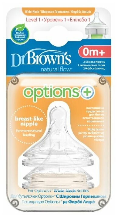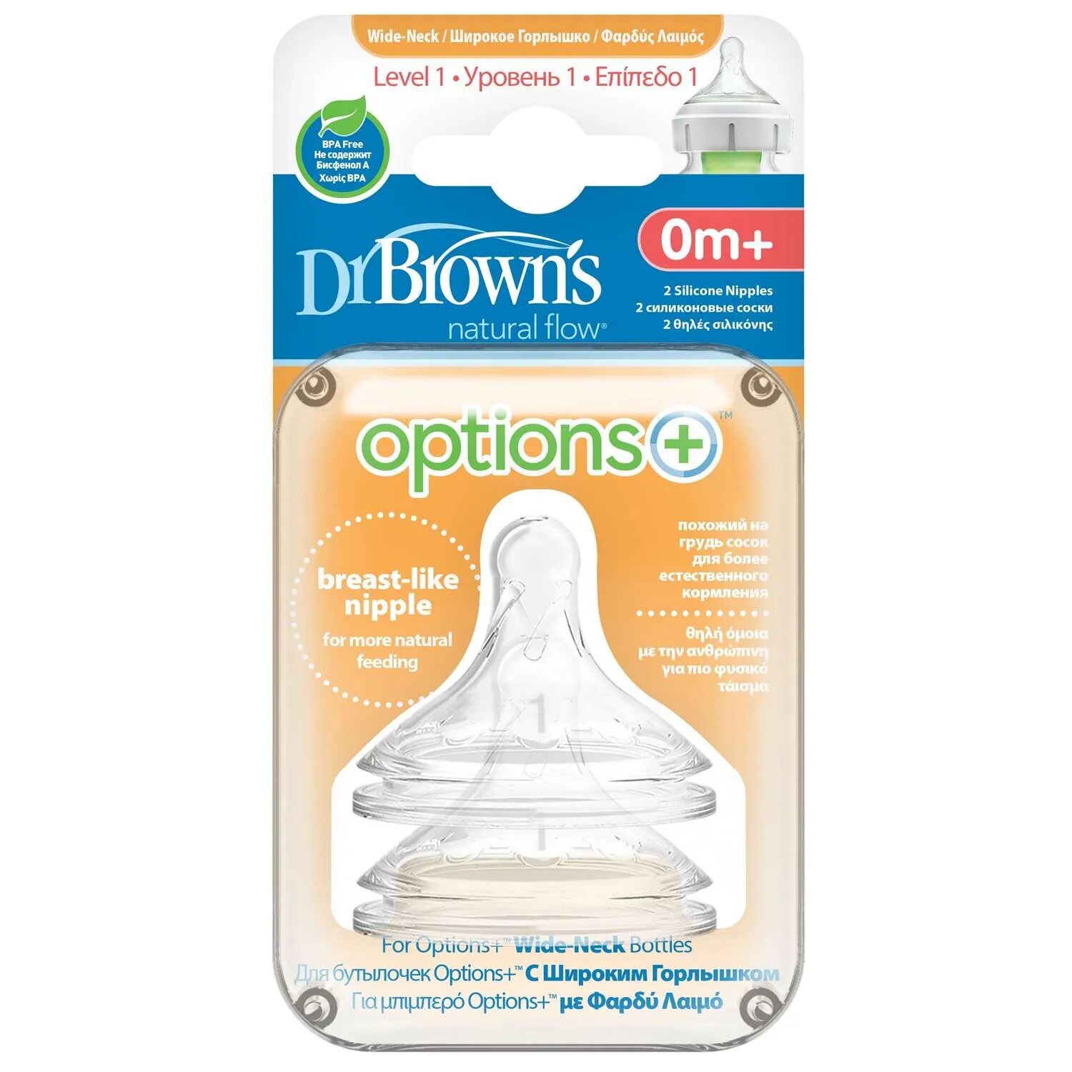 Dr.Brown's Соска силиконовая "Options+" для бутылочек с широким горлышком с 0 месяцев 2 шт. (WN1201)