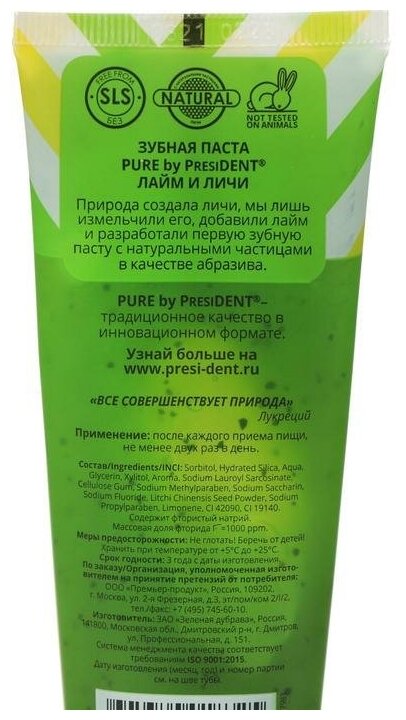 На сегодняшний день товар «President Зубная паста Pure "Лайм и личи" 100 г (70150)» можно купить с кешбеком в 5 магазинах: Галерея Косметики, DoctorSlon, Яндекс.Маркет, Aloeapteka, Vprok (Перекресток)