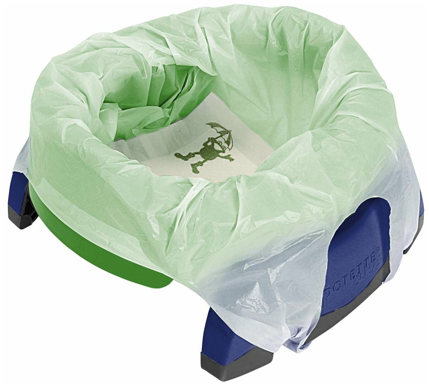 - Можно использовать тремя способами: как дорожный горшок со сменными пакетами, как домашний горшок с силиконовой моющейся вставкой, как сиденье на унитаз.