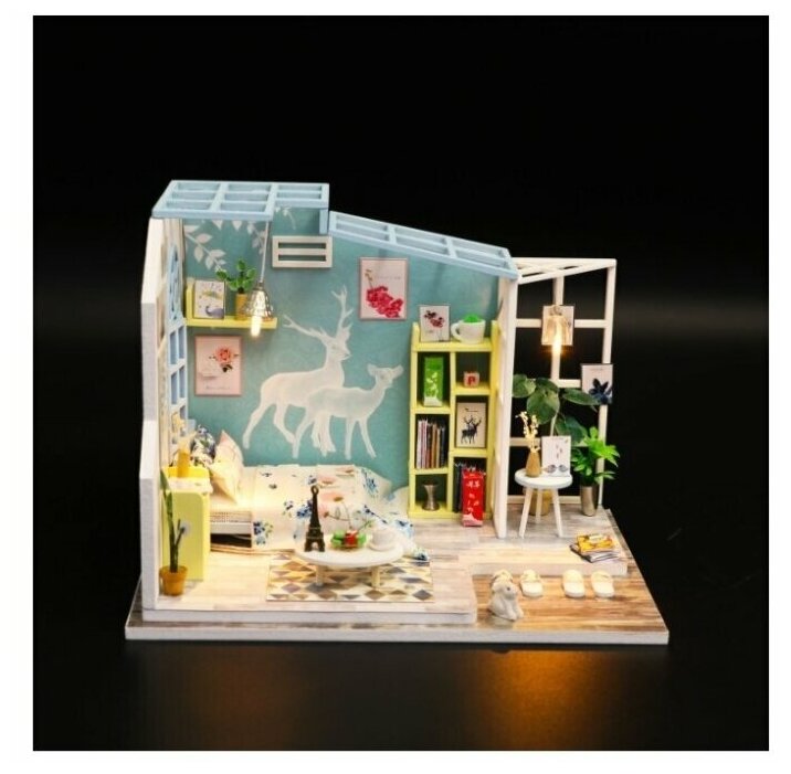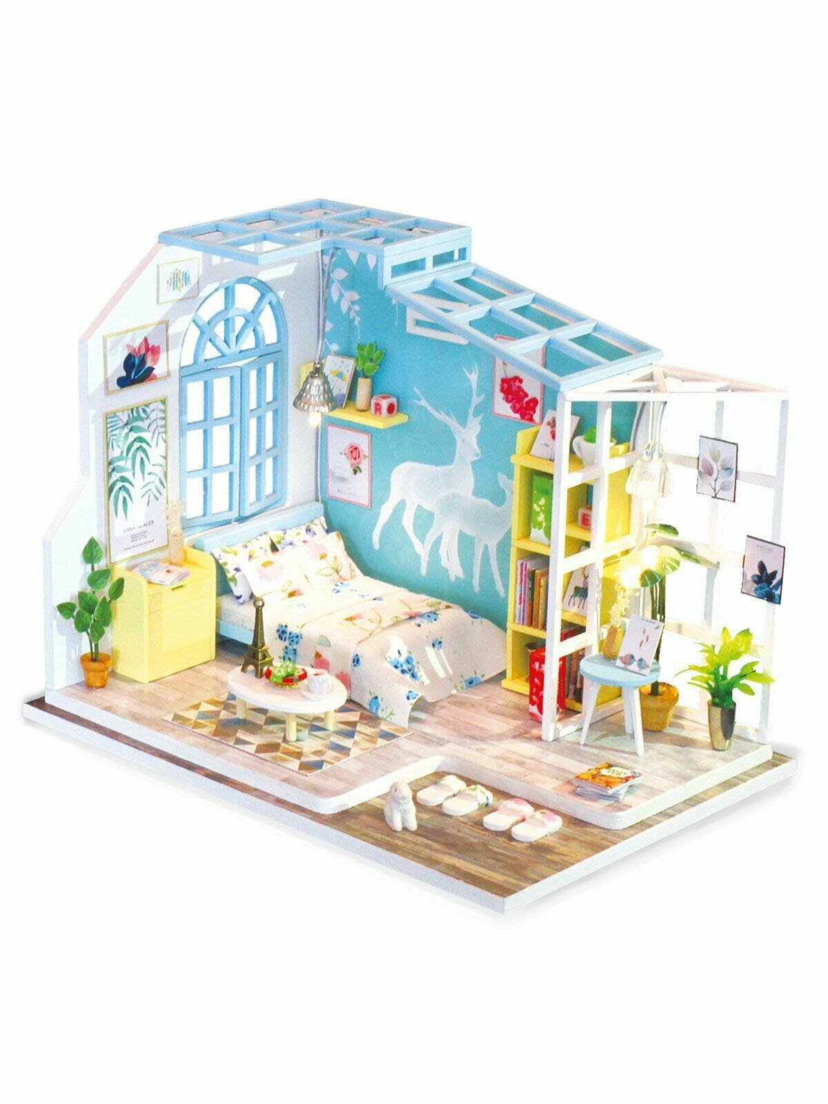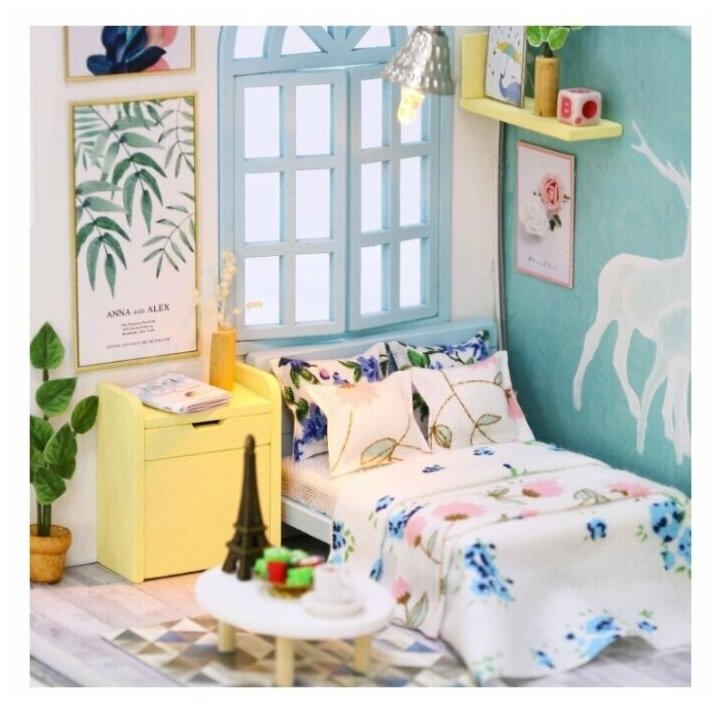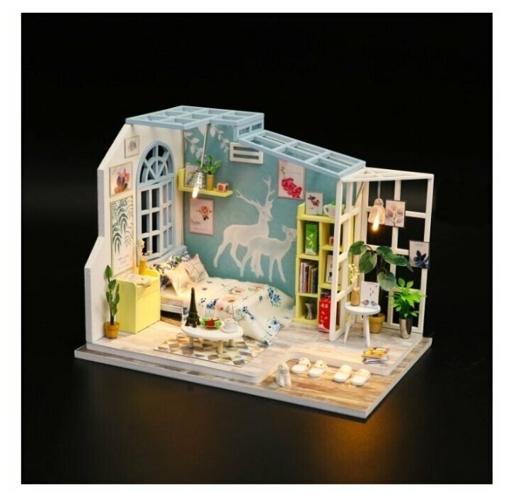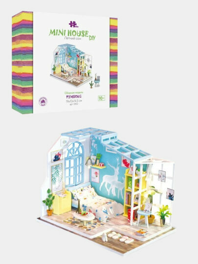 Интерьерный конструктор DIY Mini House Летний сон это не просто миниатюрная комната, которую ты можешь сделать собственными руками, это место наполненное яркими образами и нежными мечтами! Картины, роспись на стене, предметы - все наполнено природой и светом! Все сделано из качественных материалов, а сборка максимально понятна даже ребенку.