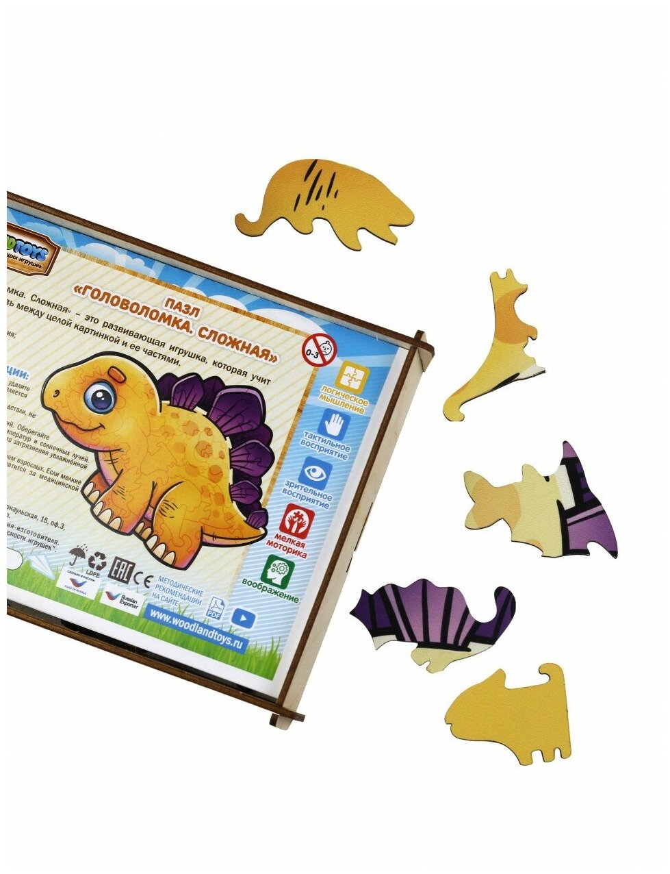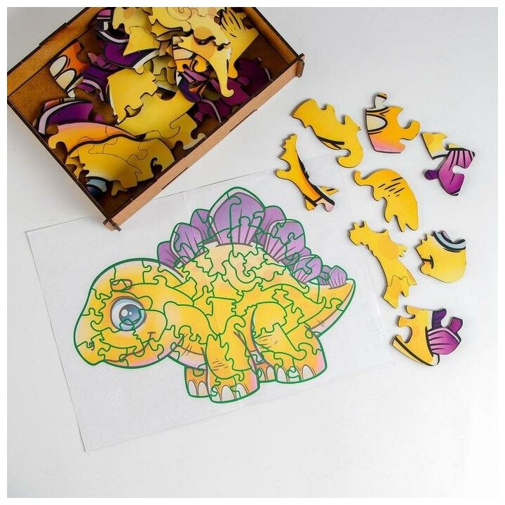 Сложная головоломка «Динозаврик» — развивающая игрушка, которая учит воспринимать связь между целой картинкой и ее частями.