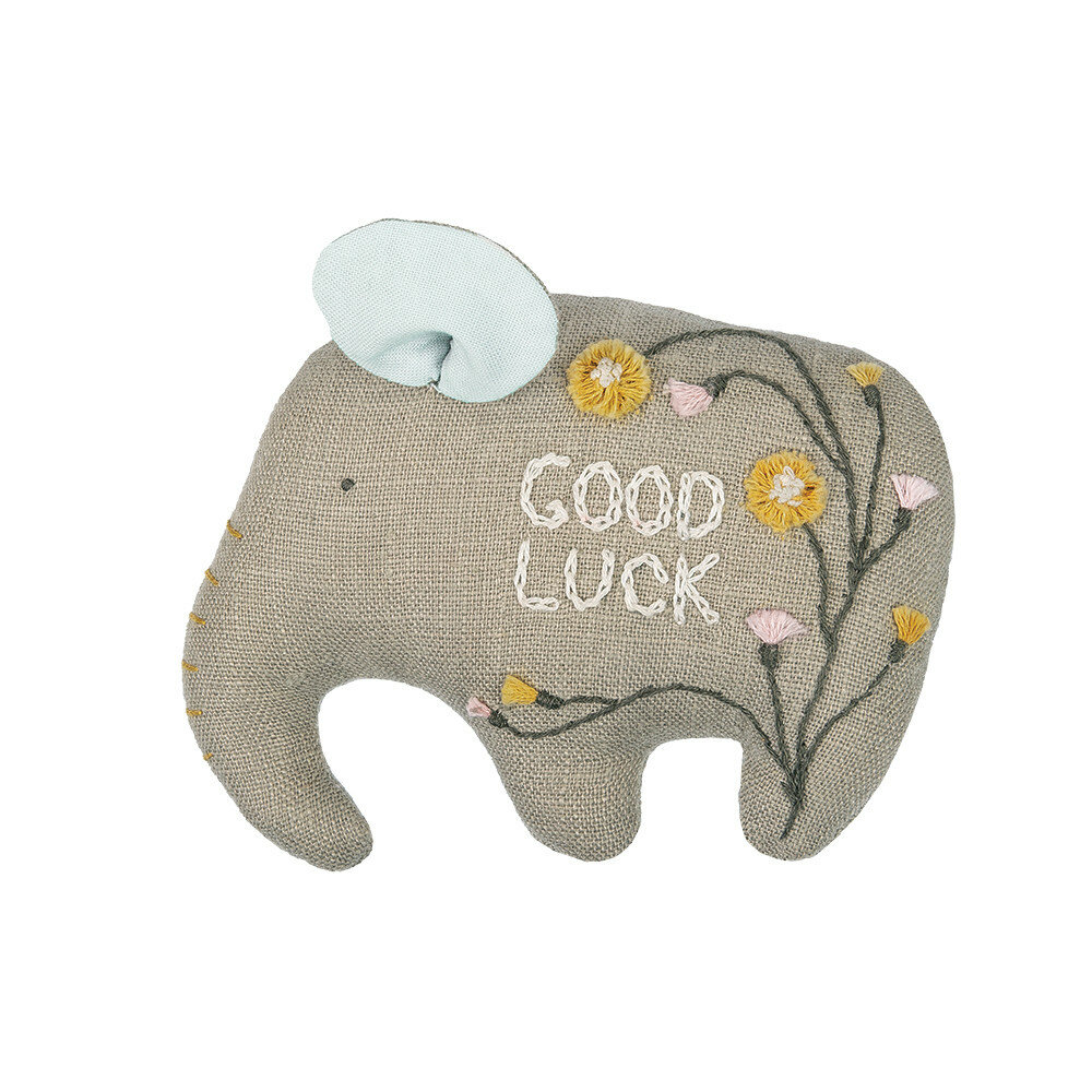 Игрушка-слоник из натурального льна с вышивкой станет отличным украшением интерьера.