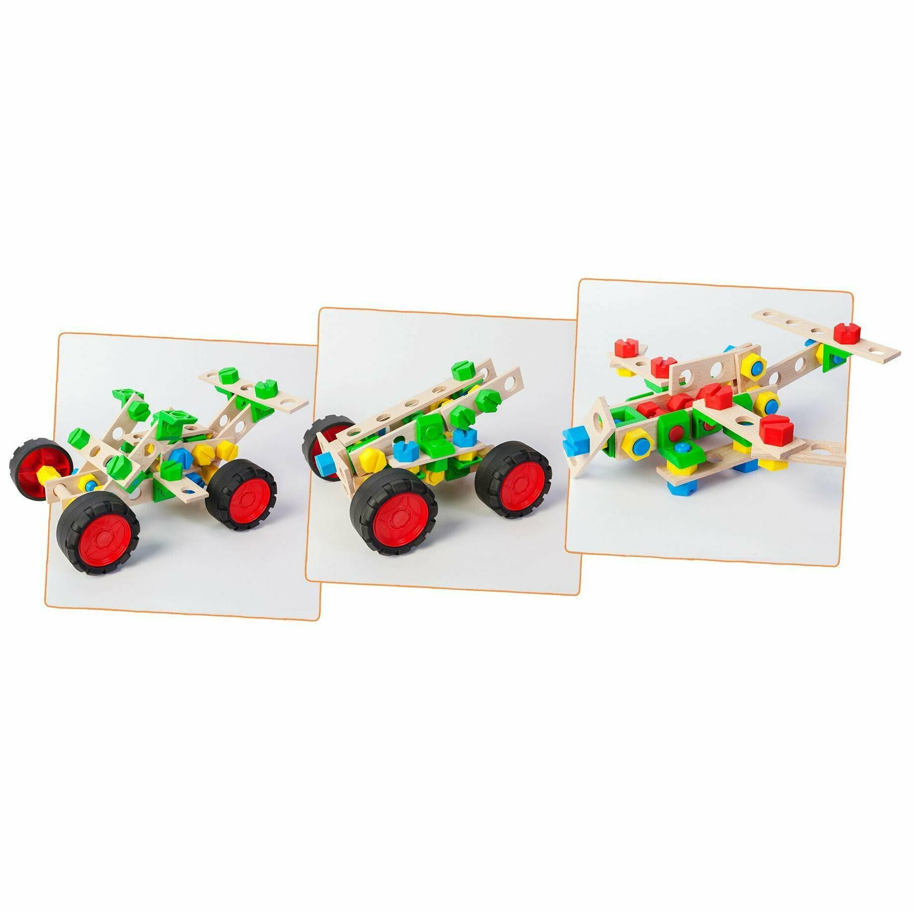 Прочные разноцветные винты и пластиковые гайки в сочетании с большими размерами элементов и упрощенным дизайном означают, что дети могут экспериментировать с инженерными разработками с самого раннего возраста.