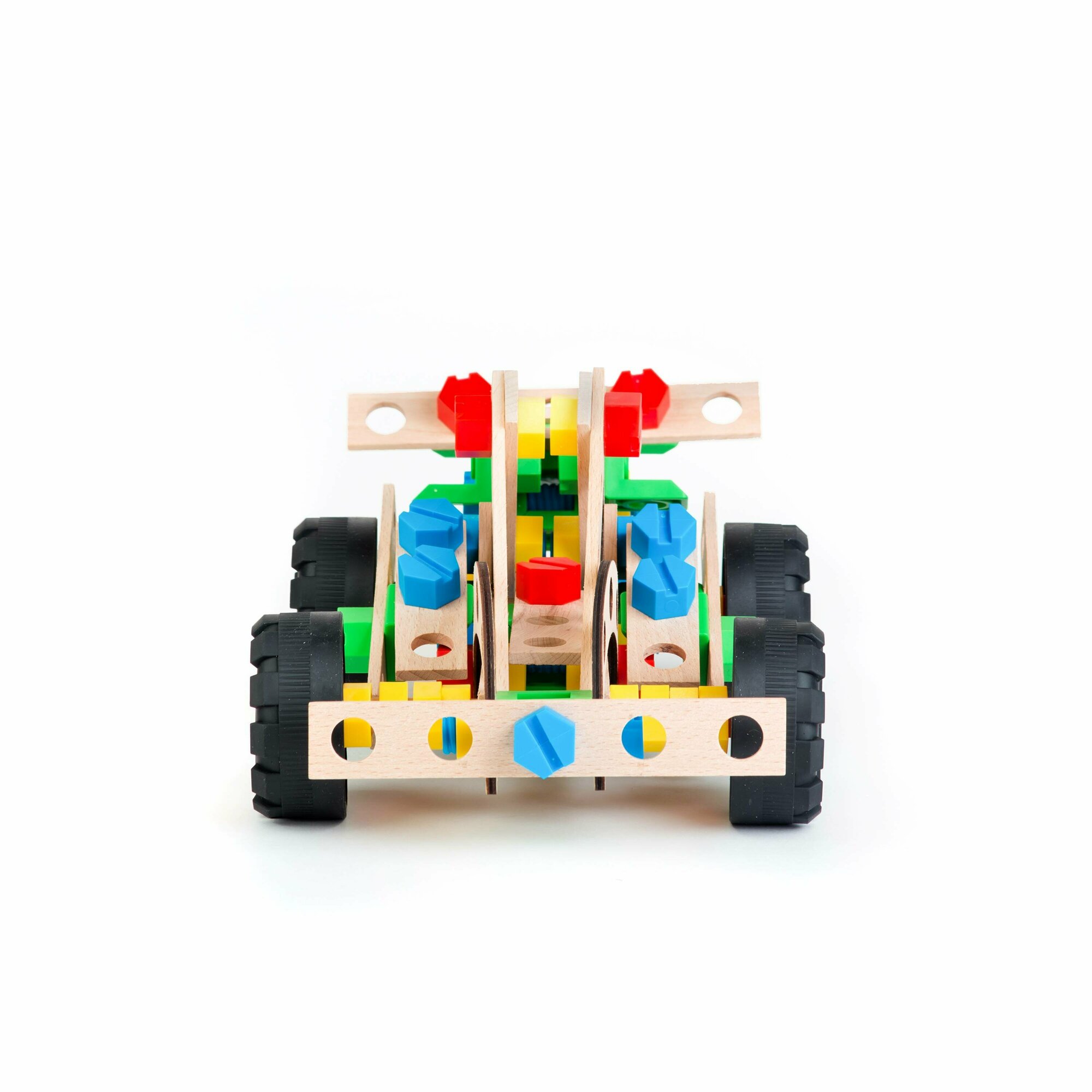 Прочные разноцветные винты и пластиковые гайки в сочетании с большими размерами элементов и упрощенным дизайном означают, что дети могут экспериментировать с инженерными разработками с самого раннего возраста.