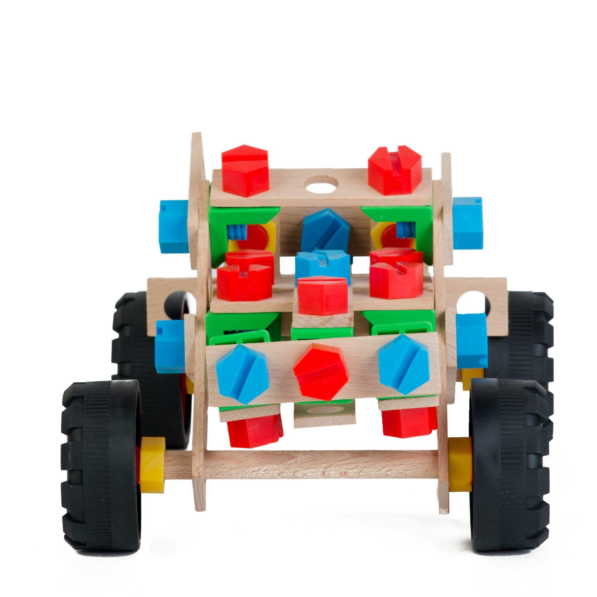 Прочные разноцветные винты и пластиковые гайки в сочетании с большими размерами элементов и упрощенным дизайном означают, что дети могут экспериментировать с инженерными разработками с самого раннего возраста.