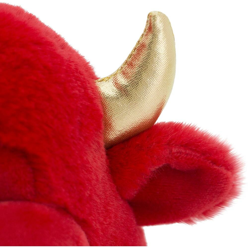 Вместе с наступающим годом в ваш дом ярким огоньком ворвется бычок Перчик! Малыш с короткой алой шерсткой, задорным хвостиком, золотистыми копытцами и рожками - душа любой компании. Страстная натура и пылкий нрав Перчика не дадут заскучать и превратят любое событие в настоящее приключение. Обязательно почешите и погладьте мягкое пузико бычка - на удачу!