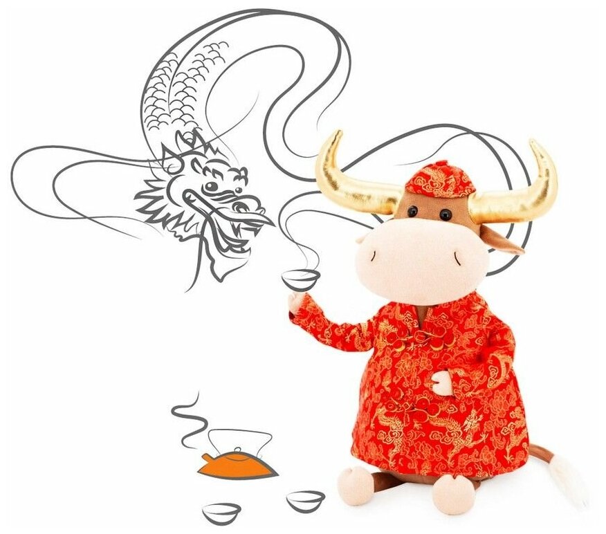 Этот бычок с бежевой шерсткой и красивыми золотыми рогами - сама уравновешенность и гармония. За его невозмутимый нрав и умение найти компромисс в любой ситуации его прозвали Мистер Дзен. Приходите к бычку на чашечку ароматного чая - он встретит вас в своем роскошном китайском халате и шапочке и с удовольствием побеседует обо всем на свете. После такого визита в вашей душе непременно поселится умиротворение и спокойствие!