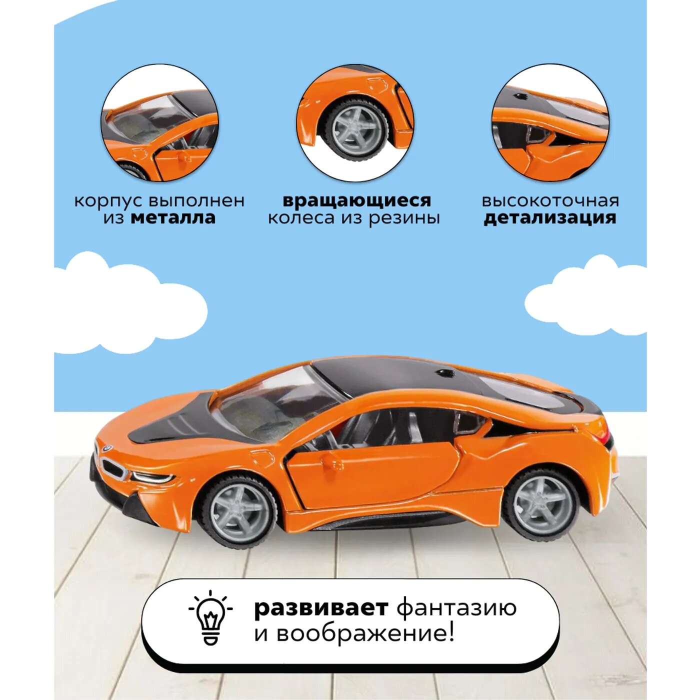 Автомобиль BMW i8 от компании Siku выпускается в масштабе 1:50, изготовлен из металла и открывается также реалистично, как и его оригинальный прототип.