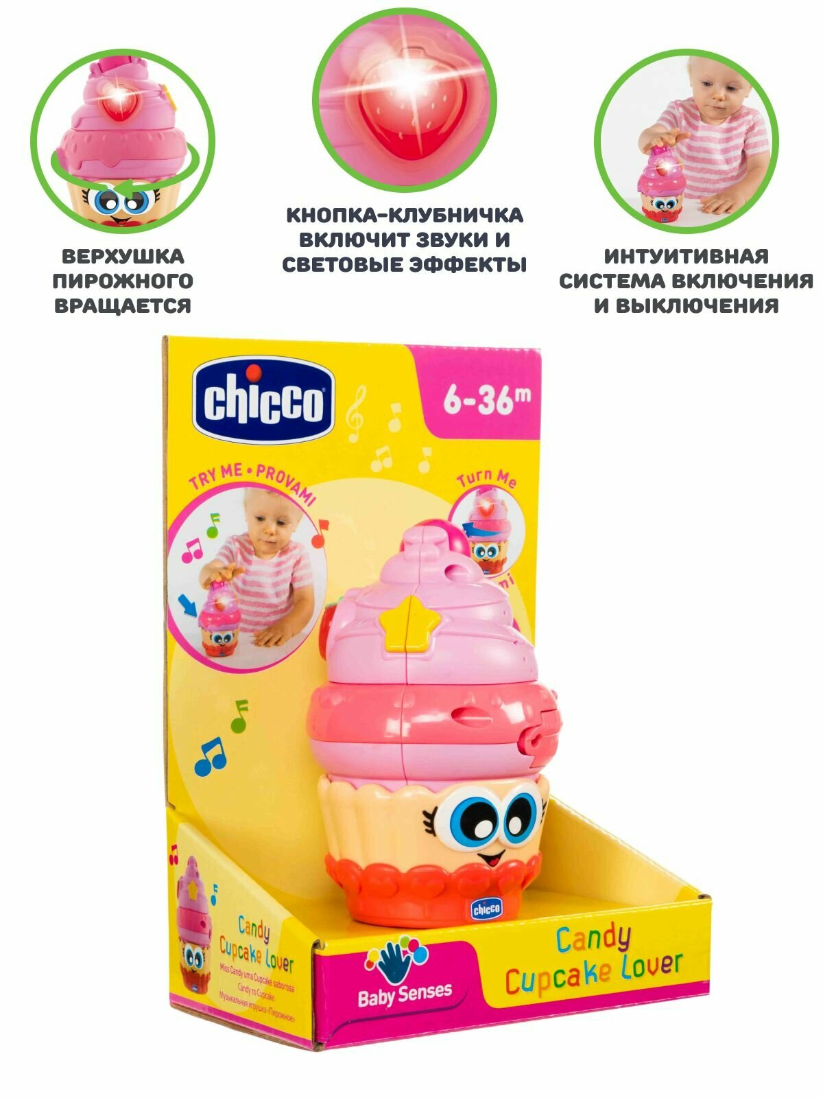 Почувствуй себя кондитером! Электронная игрушка со световыми и звуковыми эффектами для веселой игры. Игрушка «Пирожное» от Chicco развлечет малыша электронными функциями и поможет в развитии моторных навыков ребенка. Крути пирожное и оно будет крутиться, как танцор!