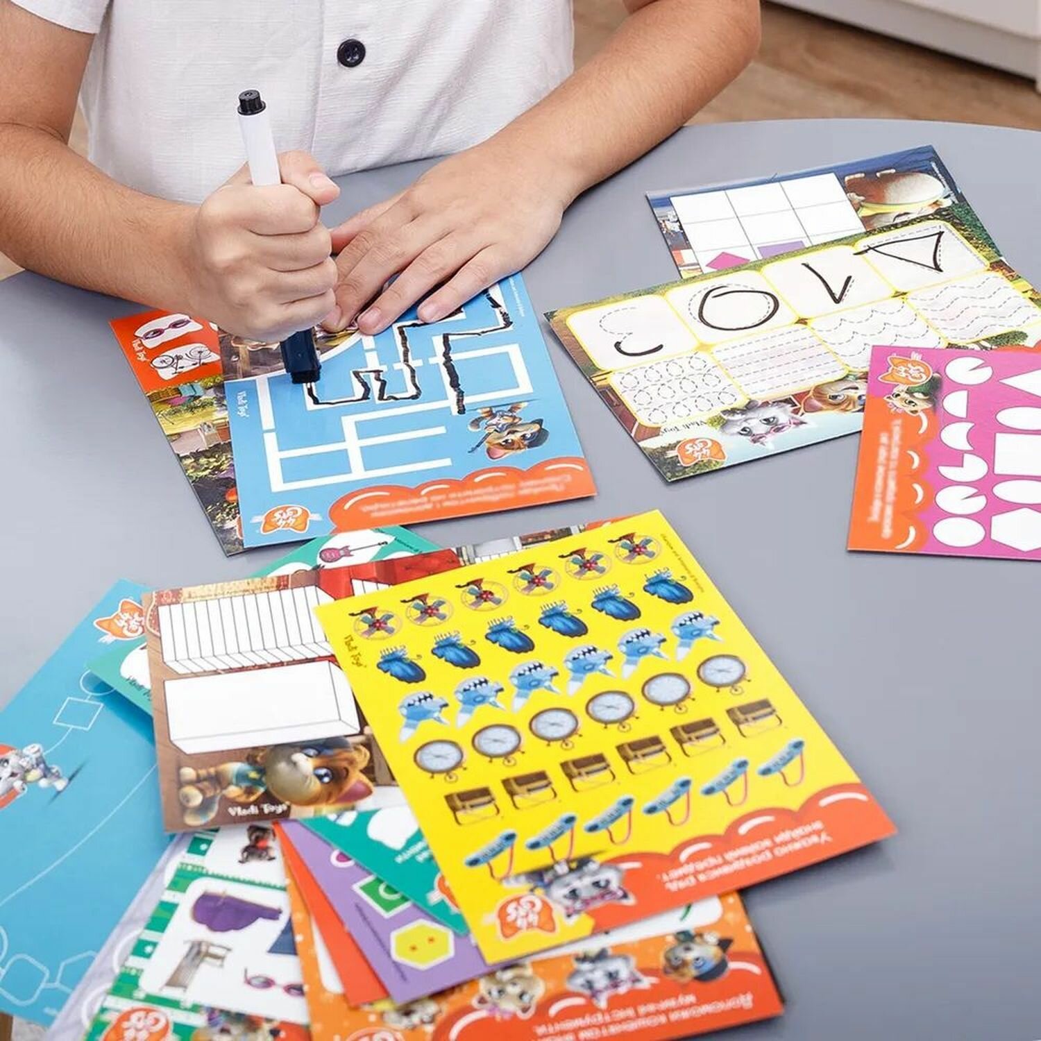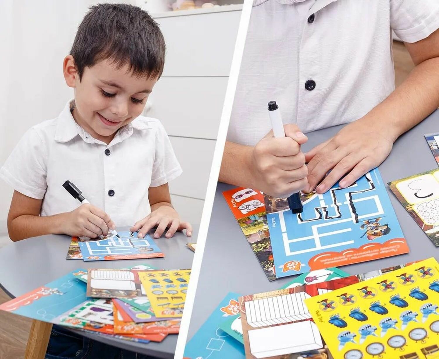 А с помощью специального маркера «Пиши и вытирай», все задания можно выполнять множество раз. Просто вытирайте надписи губкой и пишите снова.