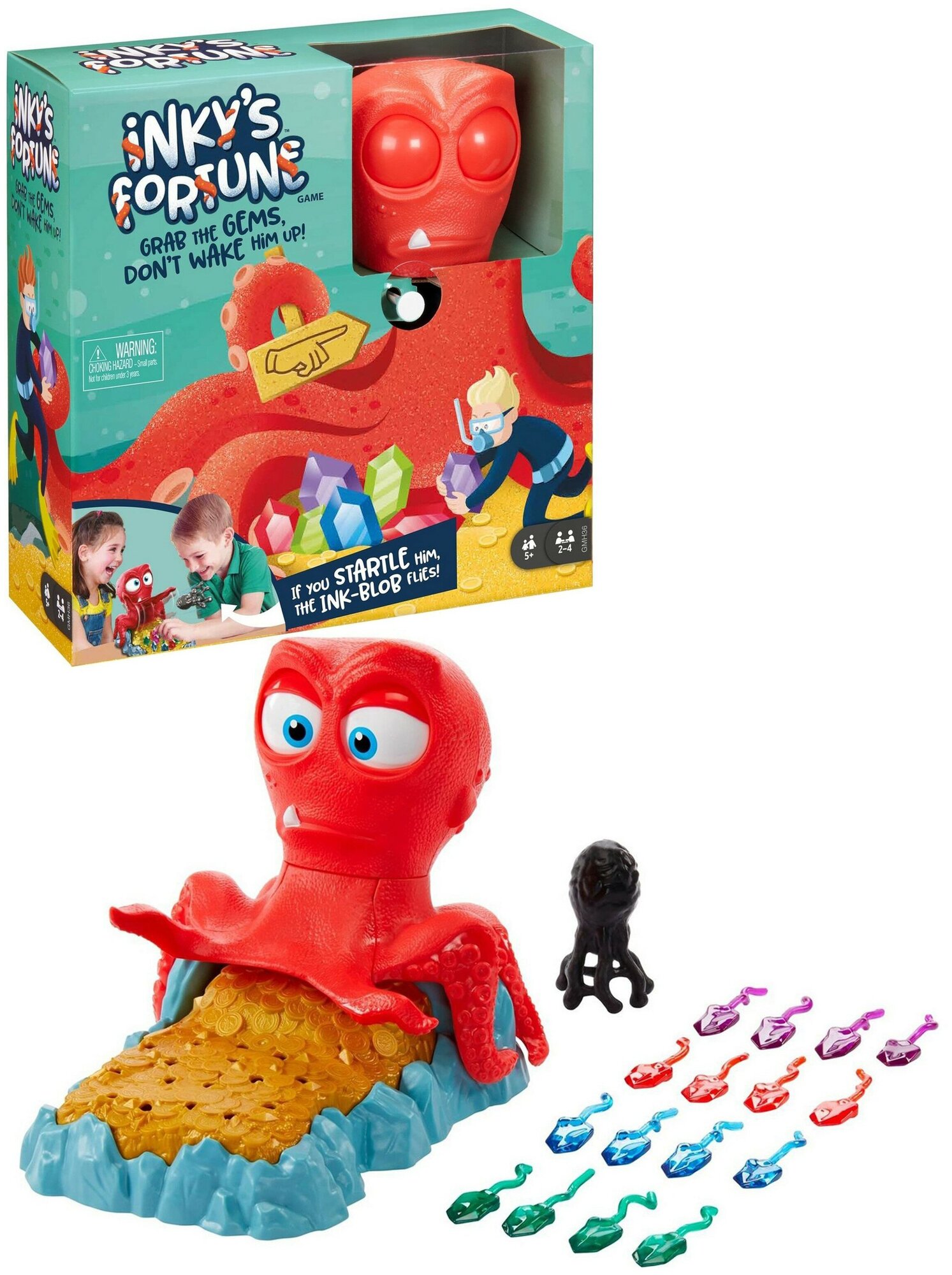 “Сокровища Осьминога” - веселая настольная игра на проверку терпения и ловкости рук. Попытайся поить драгоценные камни у Инки, спящего осьминога. Думаешь, он крепко спит? Попробуй действовать недостаточно осторожно, и он тут же проснется и начнет действовать. Берегись, в тебя летит чернильное пятно! Если тебе удастся незаметно вытащить сокровище Инки - яркий “драгоценный камень”, оставь его себе. Каждый драгоценный камень отличается, поэтому нужно проявить немало ловкости, сноровки и терпения. Выиграет тот, у кого будет больше всего сокровищ, когда все драгоценные камни собраны. Думаешь, ты сможешь победить?