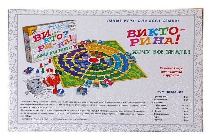 Настольная игра «Викторина», основанная на полном курсе средней школы, поможет усвоить ребенку знания по истории, биологии, литературе, астрономии и повысить общую эрудицию.