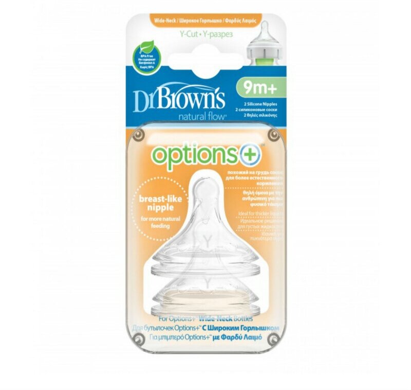 Dr.Brown's Соска силиконовая для бутылочек "Options+" с широким горлышком с Y-отверстием для соков и жидких каш 2 шт. (WNY201)