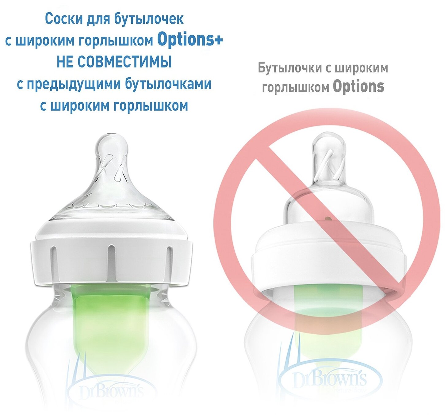 - Соска подходит к бутылочкам Options+ с широким горлышком