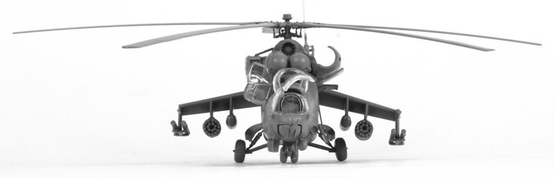 В составе ограниченного контингента советских войск эти вертолеты воевали в Афганистане, поставлялись на экспорт во многие страны мира. В настоящее время они составляют основу армейской авиации России. Модель создавалась при помощи специалистов МВЗ им. Миля и абсолютно точно соответствует геометрии прототипа.