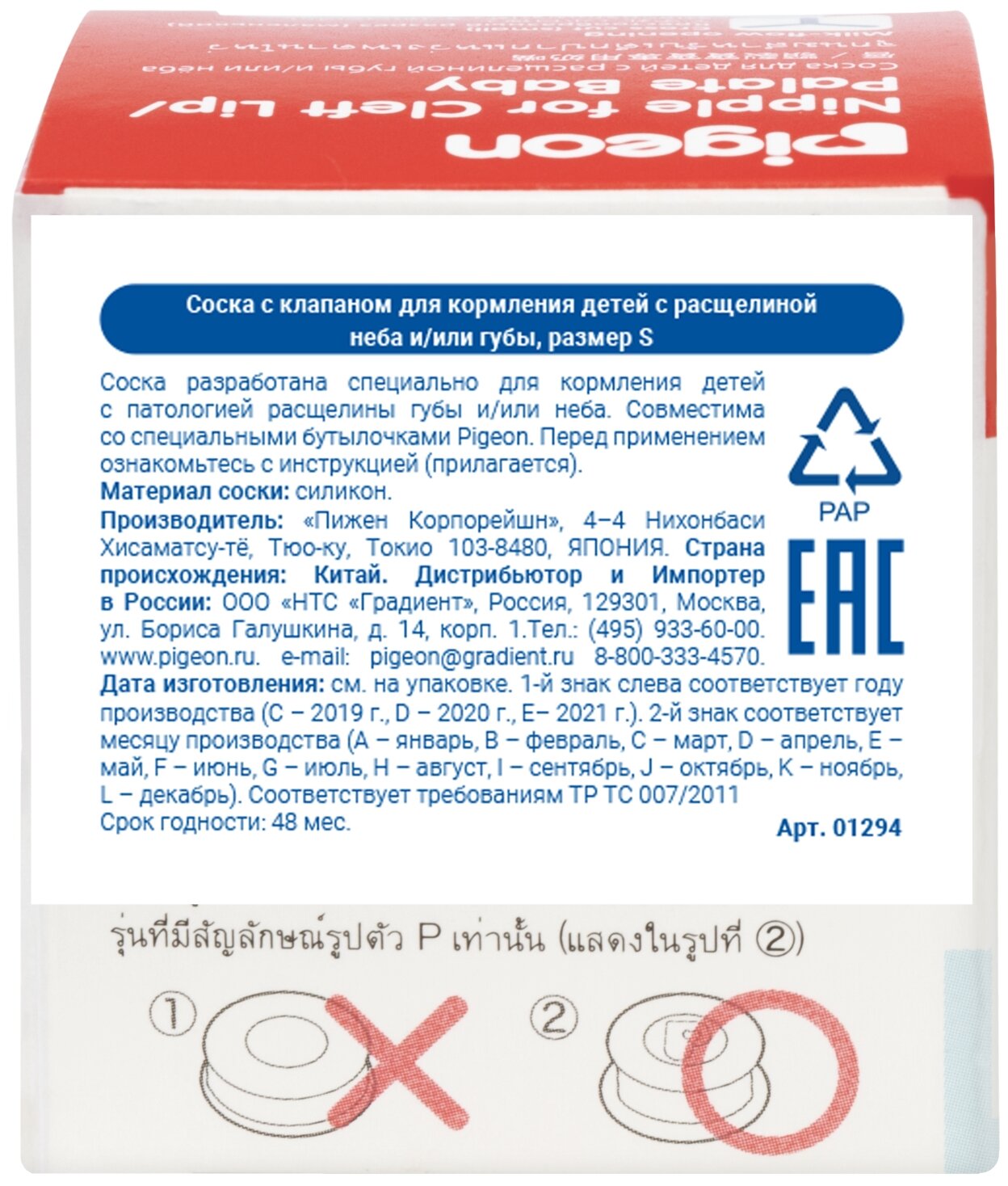 Сервис сравнения цен СкидкаГИД предлагает сравнить цены на товар «Pigeon Соска S с клапаном для кормления детей с расщелиной неба и губы силикон (01294)»