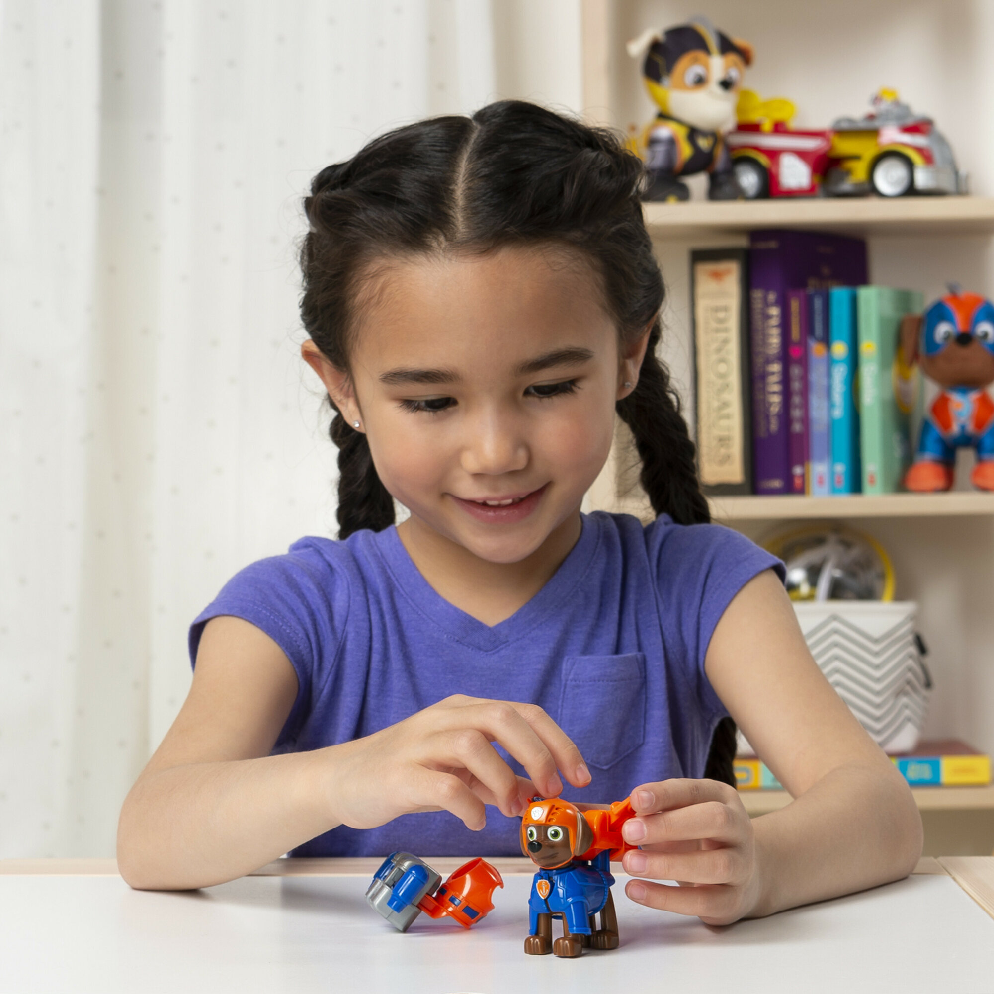 - 2 СЪЕМНЫЕ УНИФОРМЫ: Помоги Зуме мгновенно подготовиться к спасательной миссии с двумя разными костюмами! Выбери ранец и пристегни его на спину щенка. Рассекай волны на пути к приключениям!