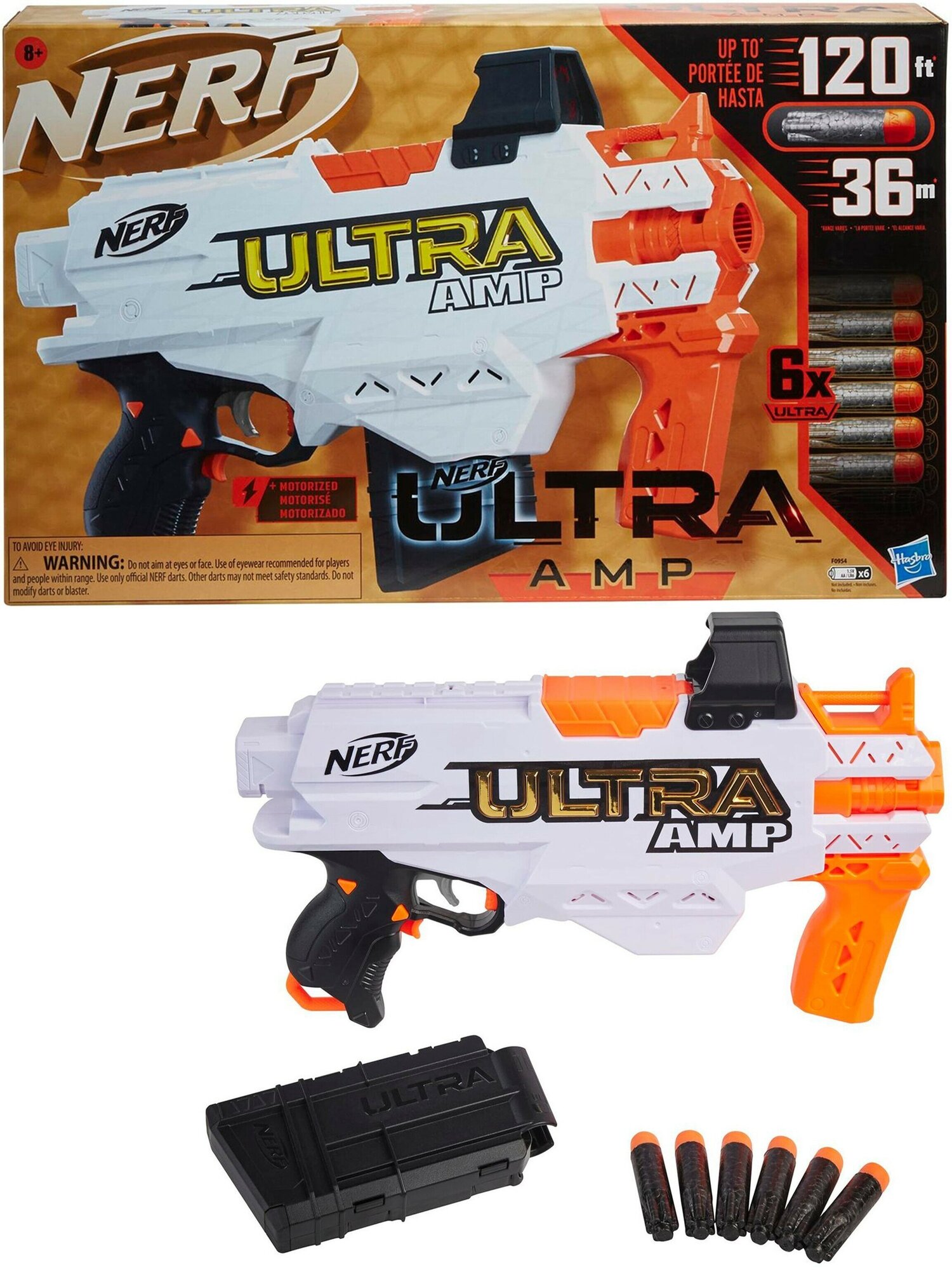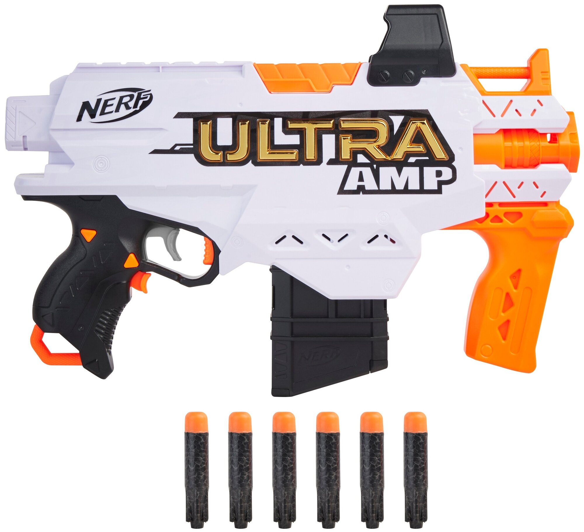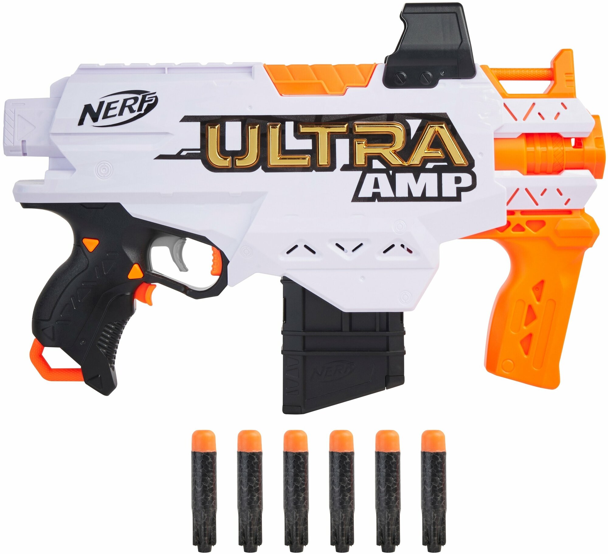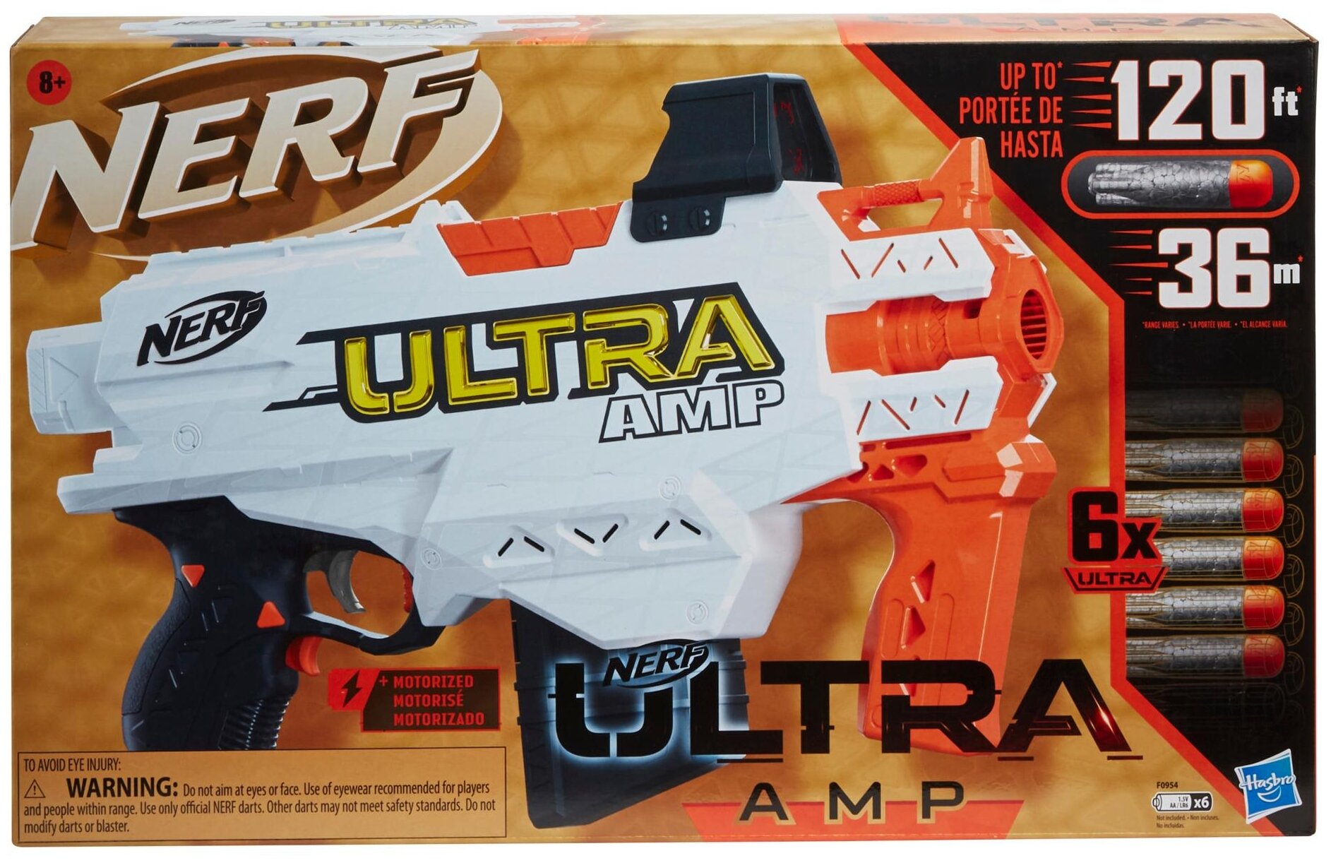 - Стреляйте в цель максимально быстро с моторизованным бластером Нёрф Ультра Амп.