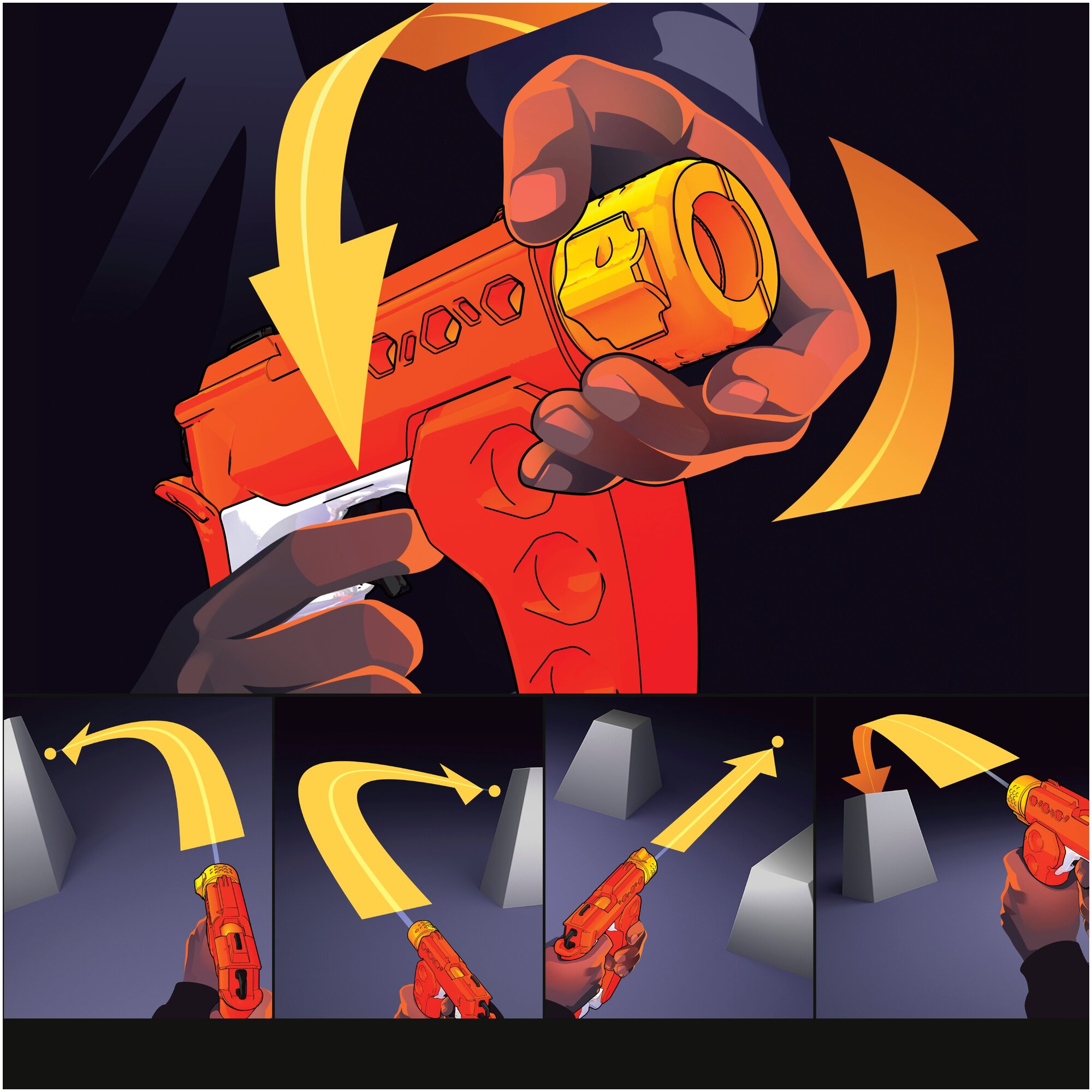 Дуло бластера вращается на 360 градусов, что позволяет выстреливать вправо, влево, вниз или по прямой