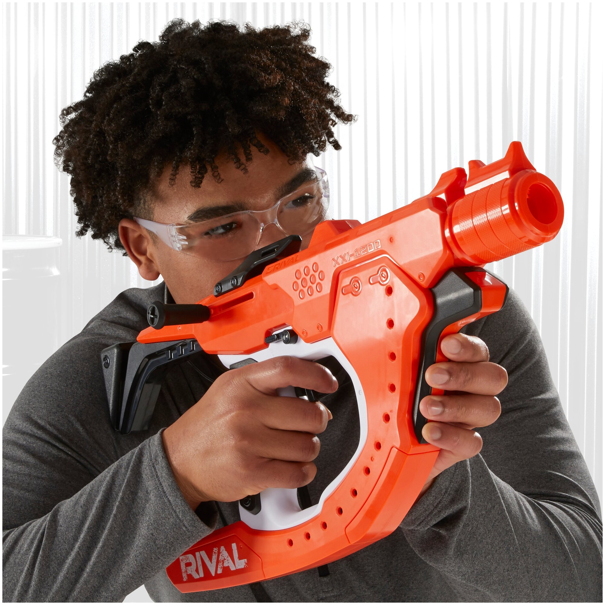 Поставляется с 12 официальными шариками Nerf Rival, имеет встроенный магазин на 12 шариков