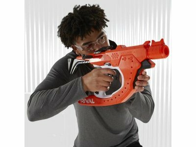 - Поставляется с 5 официальными шариками Nerf Rival, имеет встроенный магазин на 5 шариков.