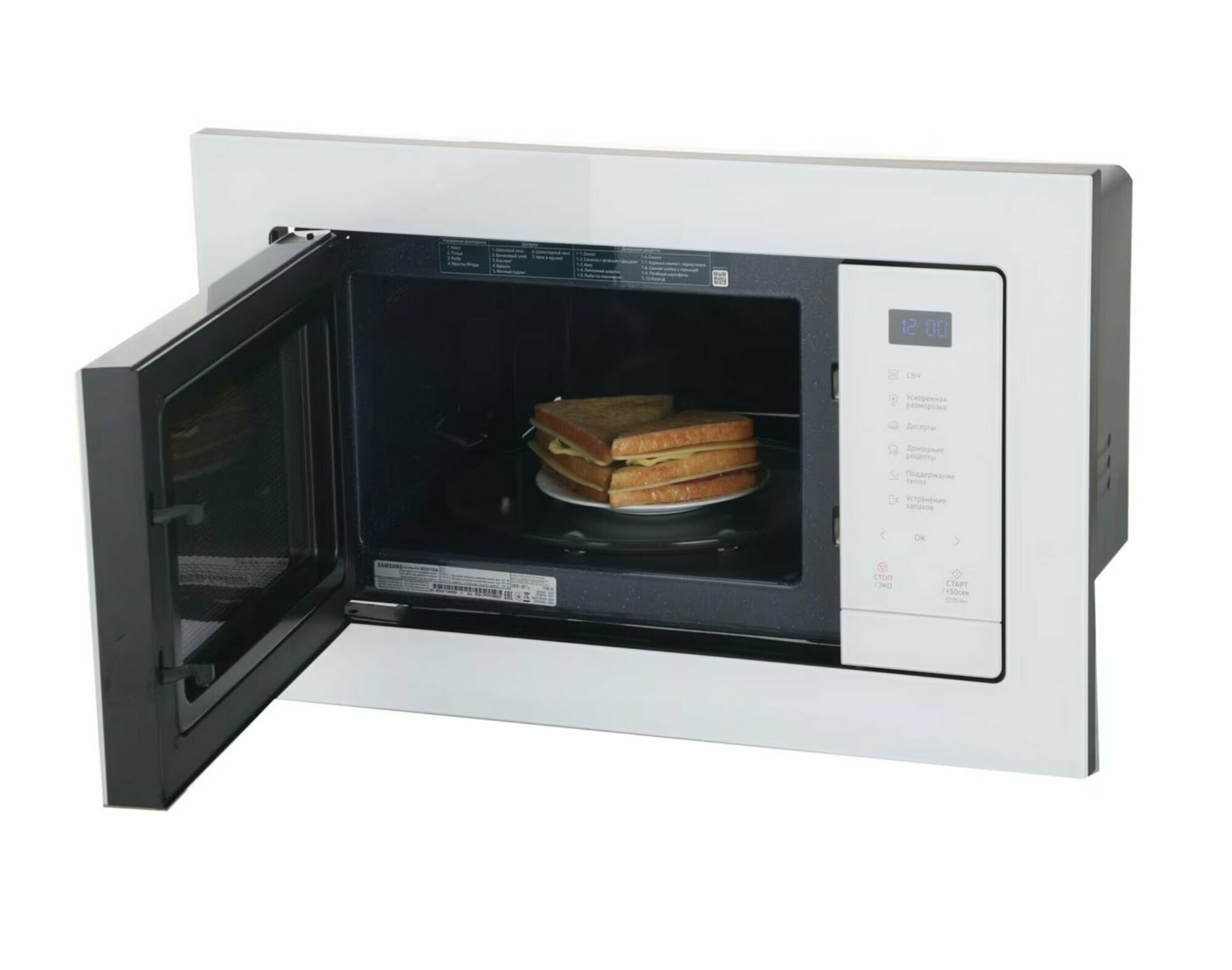 | Дополнительно * | Встраиваемая микроволновая печь Samsung MG20A7013AT может готовить блюда по десяткам рецептов. Автоматические программы максимально облегчают задачу – вам достаточно указать массу продуктов, чтобы выбрать подходящие настройки., , ВСТРОЕННЫЙ ГРИЛЬ, Зажаривайте мясо и рыбу до хрустящей корочки, запекайте сочные овощи. Используйте комбинированные режимы с микроволнами, чтобы ускорить приготовление., , ПРАКТИЧНО И БЕЗОПАСНО, Гладкое и прочное биокерамическое покрытие замедляет развитие бактерий на 99%. Оно легко отмывается от жира и всегда сохраняет ощущение свежести., , УДОБНЫЕ ФУНКЦИИ, Режим быстрого размораживания придёт на помощь, если вы забыли заранее достать продукты из холодильника. Блокировка панели управления сделает устройство недоступным для детей. |