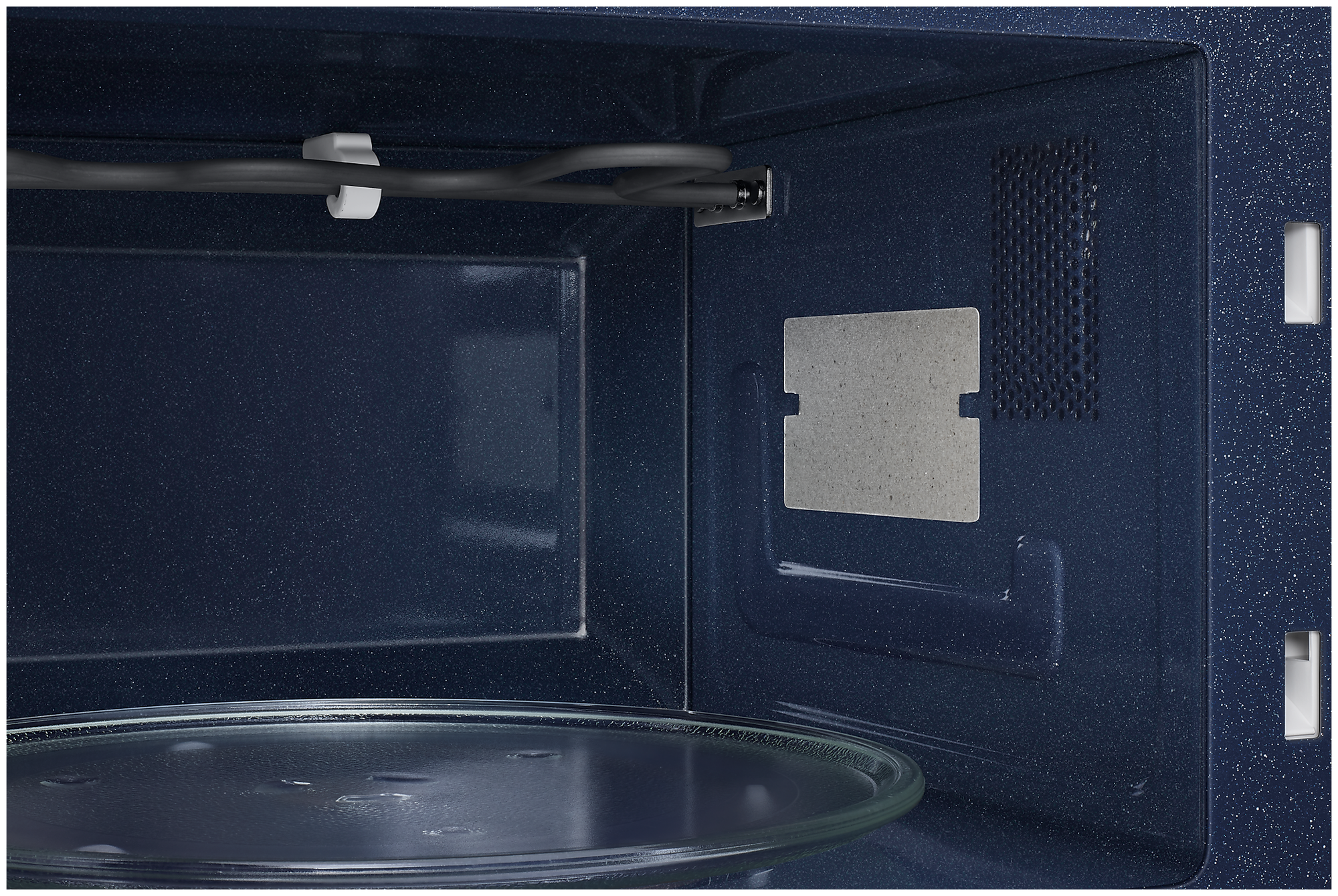Внутреннее покрытие стенок выполнено из биокерамической эмали, стойкой к повреждениям и легкой в очистке. Специальный антибактериальный слой предотвращает появление бактерий и неприятных запахов. Панель с дисплеем и кнопками обеспечивает простой выбор необходимых настроек Samsung MG20A7013AT. Навесная дверца открывается при помощи кнопки.