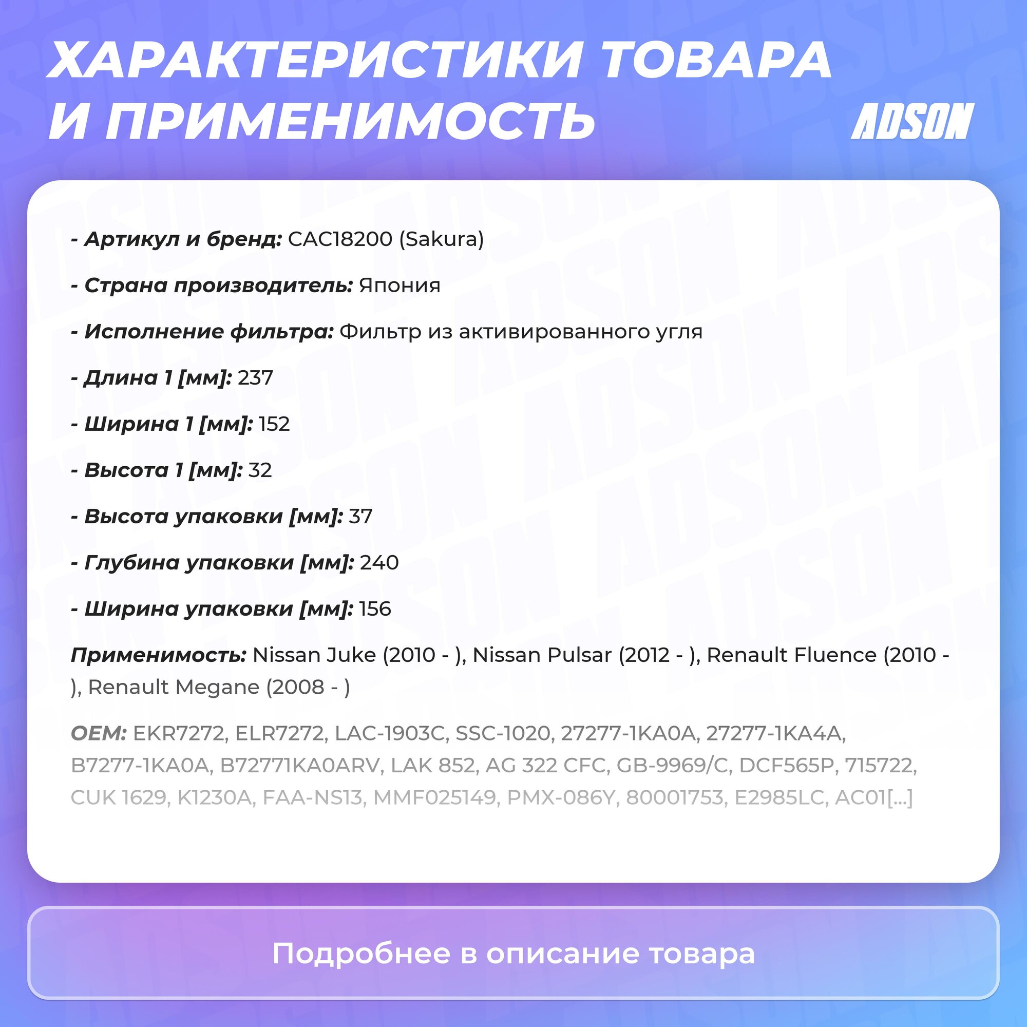 Сервис сравнения цен СкидкаГИД предлагает сравнить цены на товар «Фильтр салонный SAKURA CAC18200»