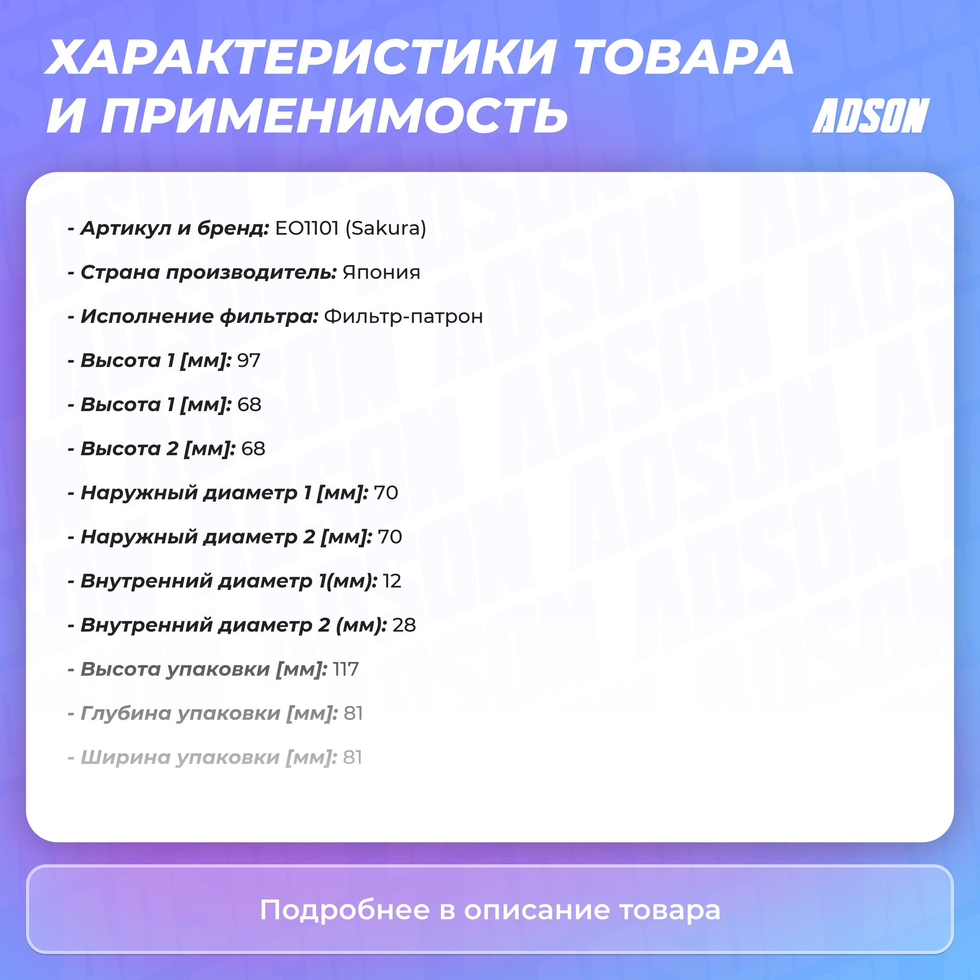 На сегодняшний день товар «Фильтр масляный SAKURA EO-1101» можно купить с кешбеком в 1 магазине: Яндекс.Маркет