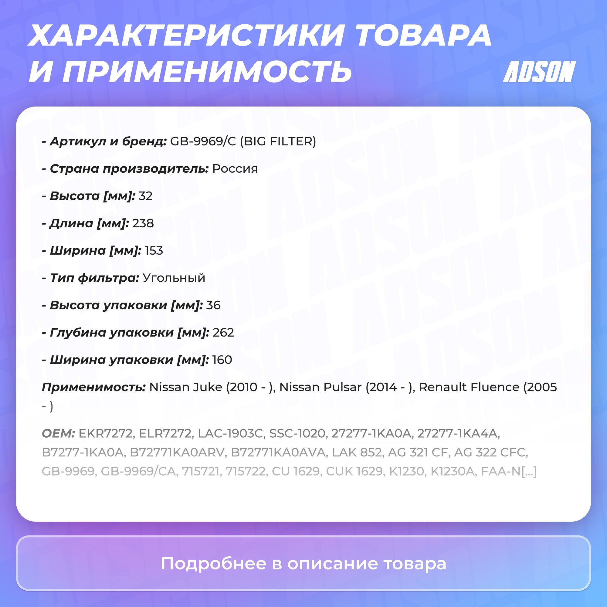Сервис сравнения цен СкидкаГИД предлагает сравнить цены на товар «Фильтр салонный BIG FILTER GB-9969/C»