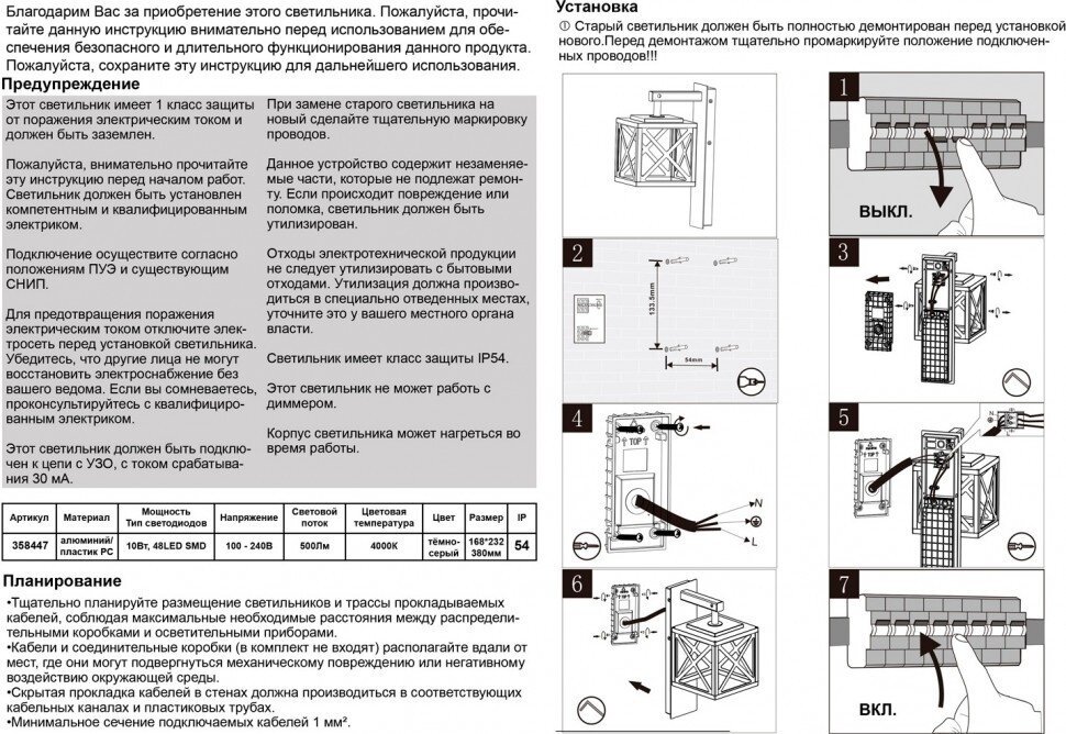 | Вид товара | Уличные настенные |
