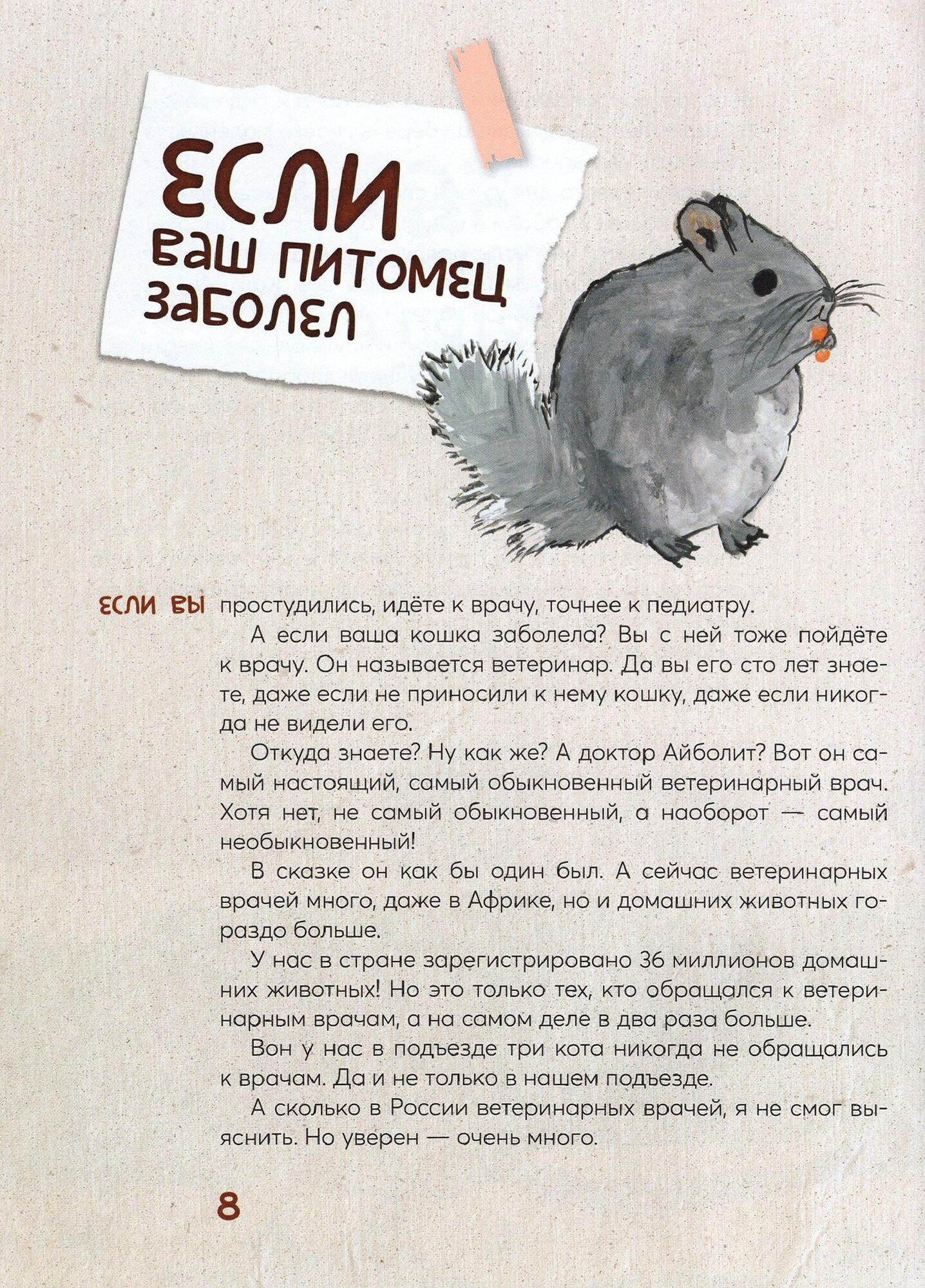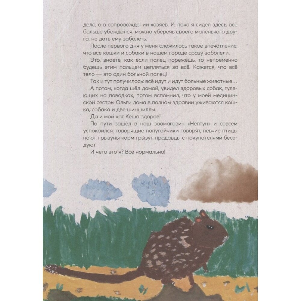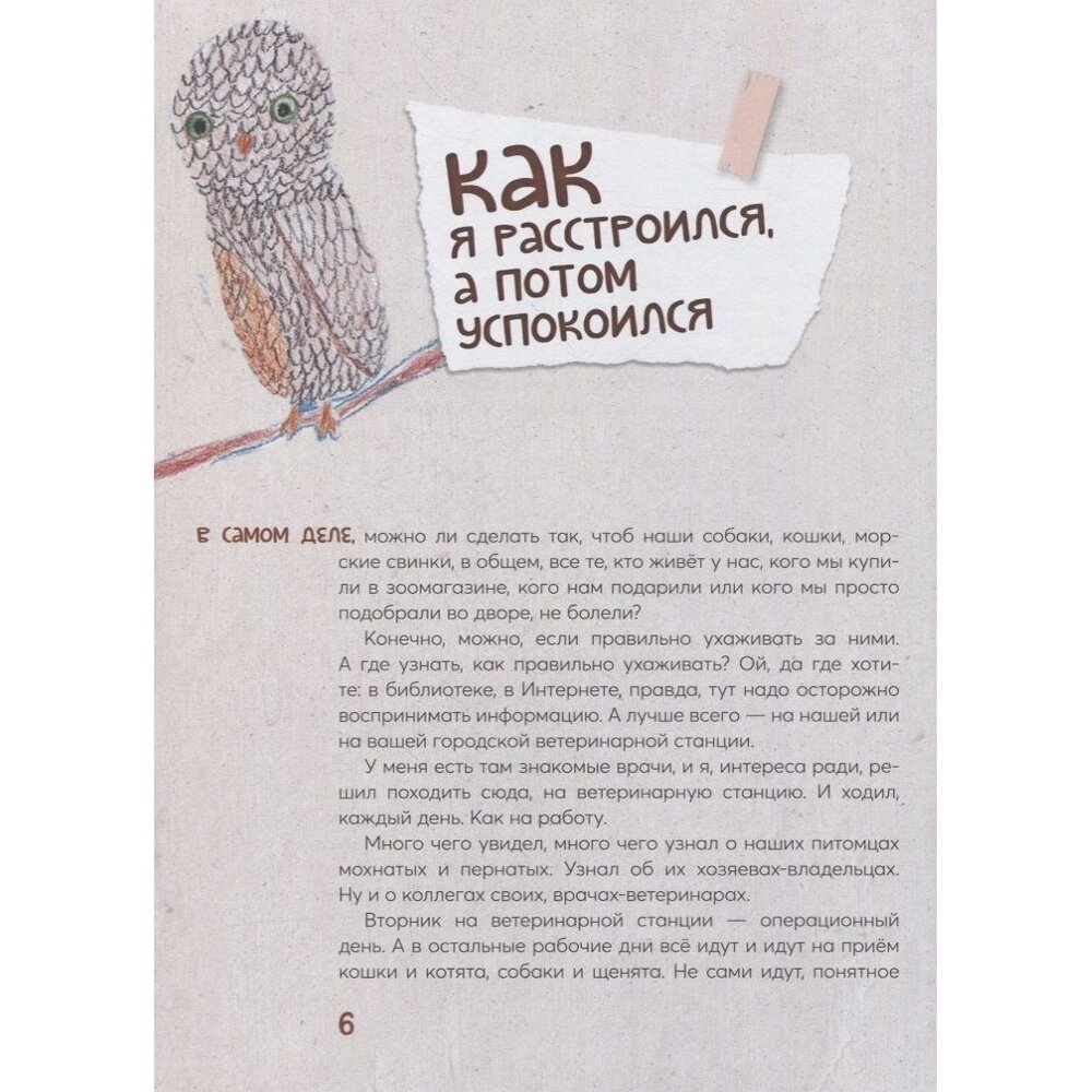 Замечательная книга, купила дочке, т.к. она очень хочет стать ветеринаром. Полезные истории как для детей, так и для взрослых, об ответственном содержании наших домашних животных. Понравилась изложенная в книге мысль о том, что когда болеют люди, то сразу идут к врачу. А у животных в чем должно быть по-другому? Не нужно тянуть с посещением вашего участкового "Айболита" и будьте внимательны к вашим питомцам, потому что мы в ответе за тех, кого мы приручили.