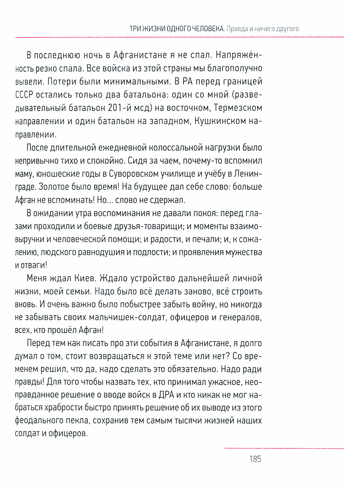 Борис Всеволодович Громов - прославленный генерал-афганец, Герой Советского Союза, командующий 40-й армией в самый ответственный заключительный период Афганской войны. Его воспоминания - это взгляд очевидца самых важных событий в России 1980-2010 годов. Взгляд правдивый и очень личный. В книге использованы фотографии В. Киселева, А. Жабина, В. Хабарова, А. Барковского, МИА "Россия сегодня", а также из личного архива автора.