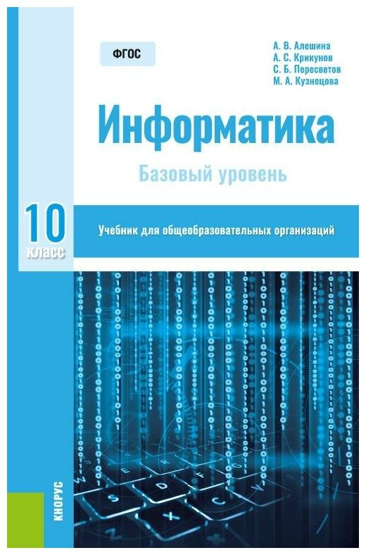 Информатика. 10 класс. Учебник. Базовый уровень. (Алешина Анна Валентиновна, Булгаков Андрей Леонидович, Крикунов Арсений Сергеевич); КноРус, 2021