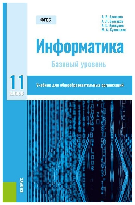 Информатика. 11 класс. Учебник. Базовый уровень. (Алешина Анна Валентиновна, Булгаков Андрей Леонидович, Крикунов Арсений Сергеевич); Кнорус, 2021