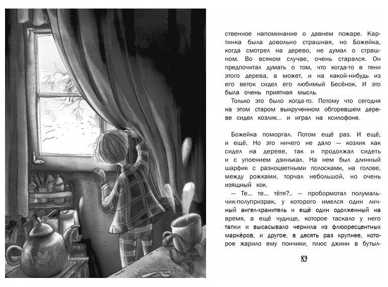 Во второй книге домочадцы Божейки, в том числе и маленький ангел- хранитель, подхватили ветрянку и Божейке, чтобы не заболеть и облегчить маме уход за больными, пришлось уехать к тете на все каникулы в еще более старый и странный, чем их собственный, дом, где познакомились его родители и где его опять ждут приключения, в которые трудно поверить взрослым, но которые иногда происходят в жизни детей, ангелов и чертиков. Потому что тетя тоже оказалась вовсе не простой женщиной с еще более непростыми друзьями и подопечными.