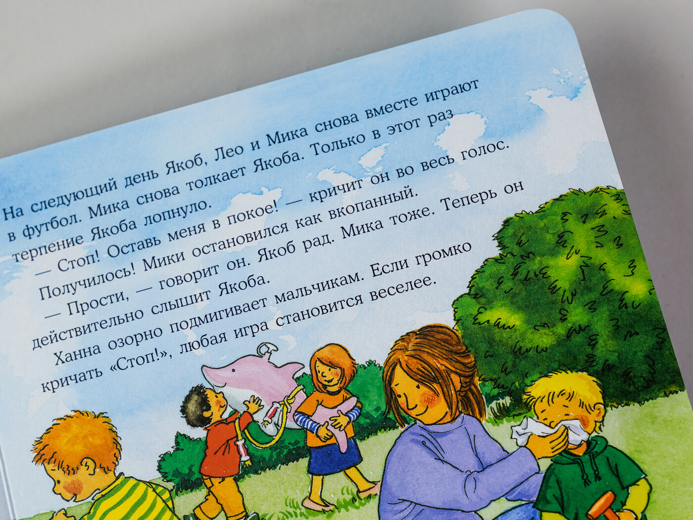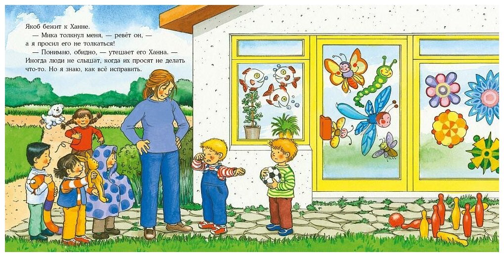 Якоб не любит, когда его толкают — даже в шутку. Но он не знает, как сказать, чтобы его точно услышали! Воспитательница Ханна учит его одному интересному приёму. Теперь даже мама точно будет слушать Якоба!