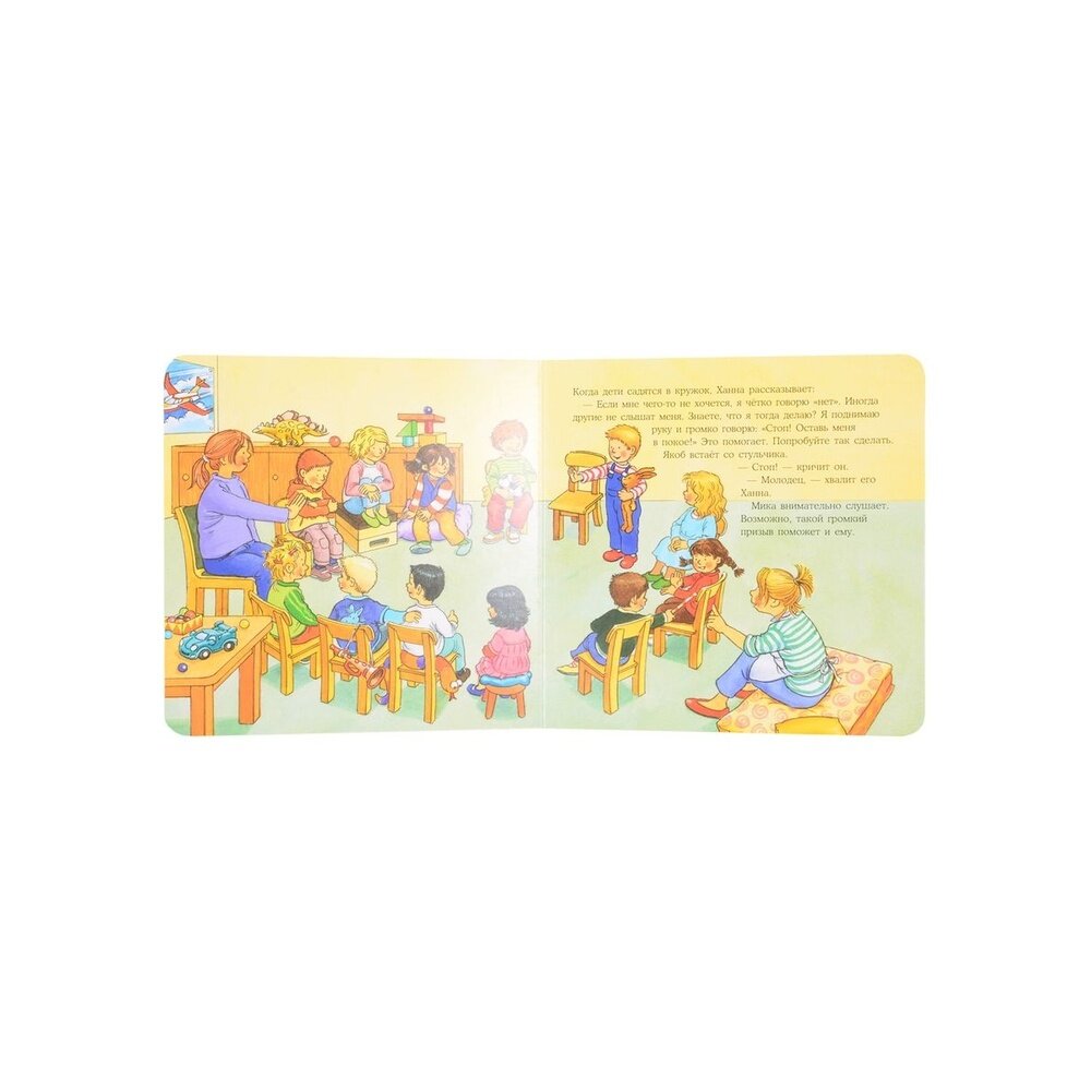 Книга нам с сыном очень понравилась. Она картонная, удобного формата, яркая и красочная и на актуальную для ребёнка тему: как и правильно отказать. Это очень важно по двум причинам: во-первых дети не умея говорить нет часто действуют прямо кулаками, нам же надо, чтоб они действовали словами. Во-вторых ребёнка нужно научить выражать свой протест так, чтоб его услышали и поняли, тогда и для него будет меньше расстройств