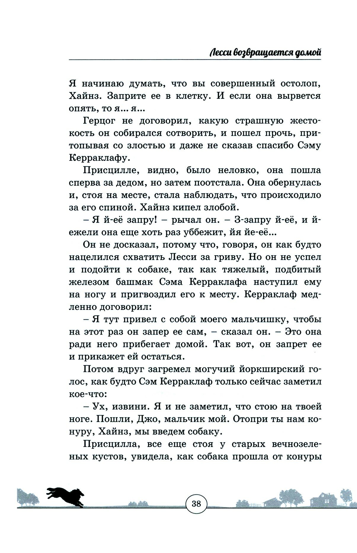 Эта потрясающая история о дружбе и верности уже восемьдесят лет не оставляет равнодушными своих читателей. Породистая красавица колли по кличке Лесси - хрестоматийный пример преданности четвероногого друга своему хозяину. Она оказалась способна преодолеть тяжелейший путь в сотни километров и, претерпев множество тягот и опасностей, осталась верна своему Человеку.
