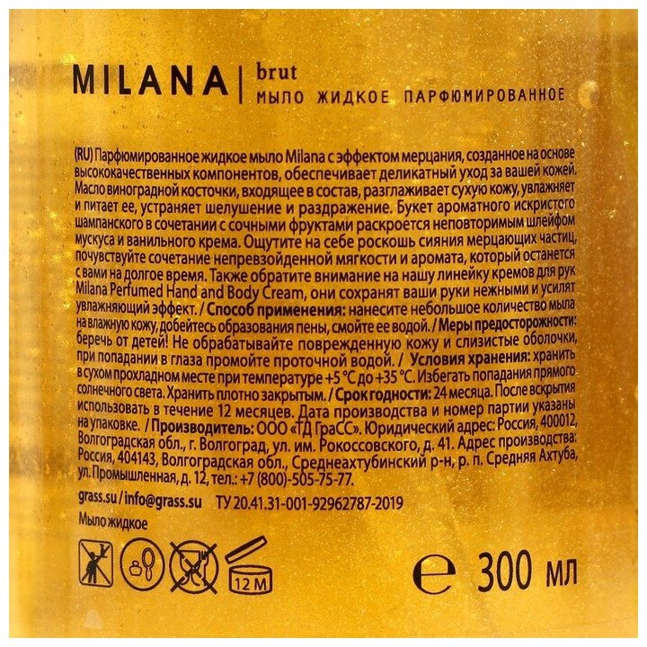 Сервис сравнения цен СкидкаГИД предлагает сравнить цены на товар «Мыло жидкое парфюмированное Grass 300 мл Milana Brut»
