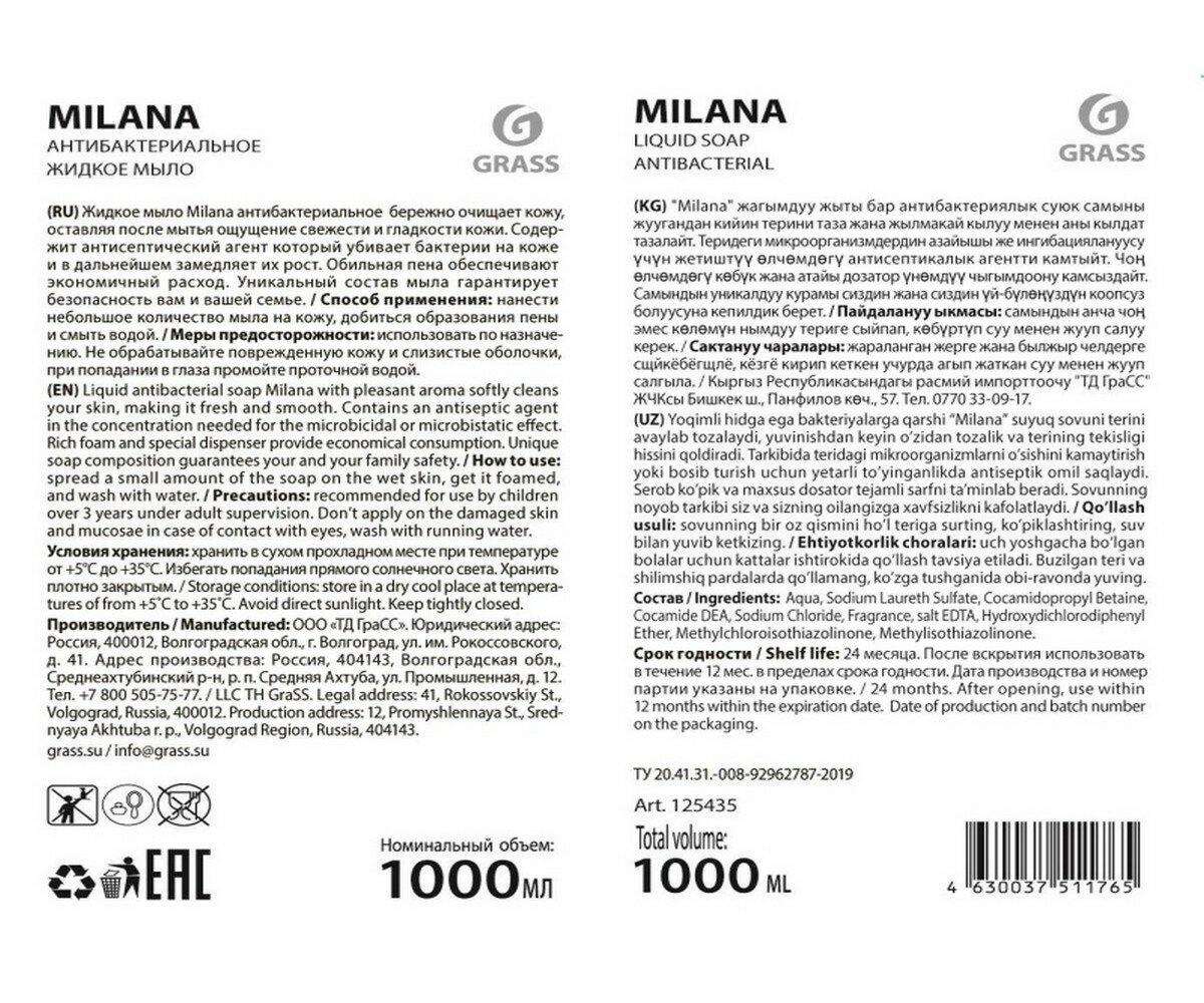 Антибактериальное жидкое мыло Milana с приятным ароматом бережно очищает кожу, оставляя после мытья ощущение свежести и гладкости кожи. . Уникальный состав мыла гарантирует безопасность Вам и Вашей семье.